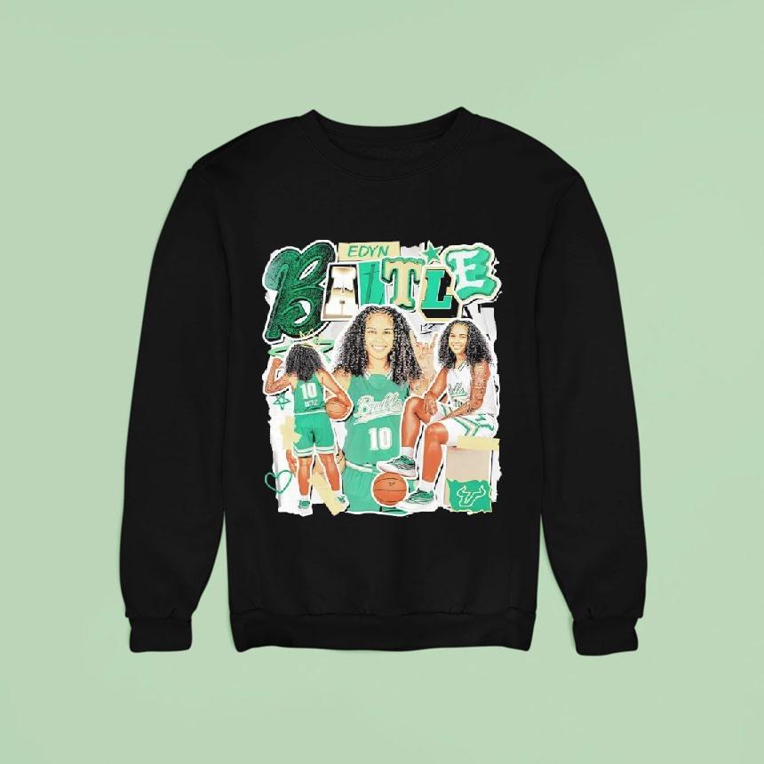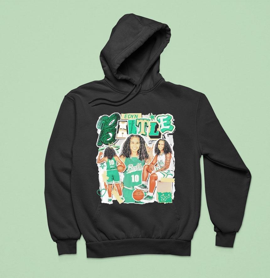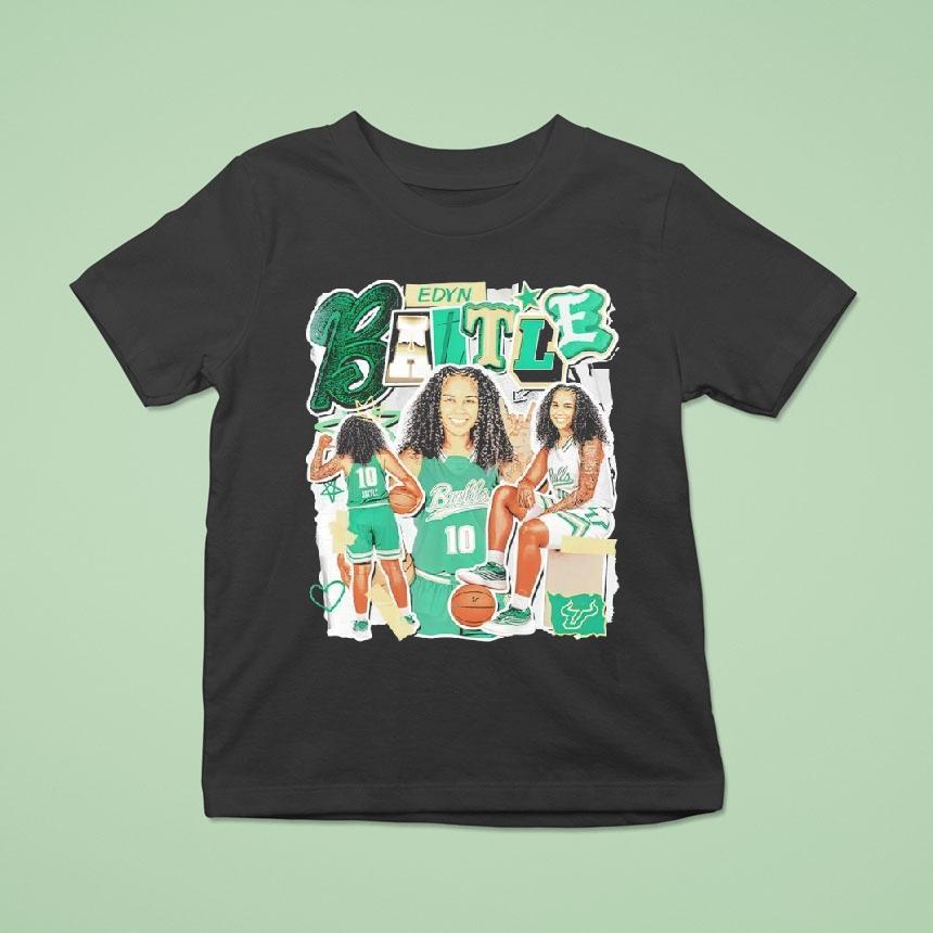 Casual elegance, always with Edyn Battle Usf Ncaa South Florida Bulls Women’s Basketball Shirt, get ready to show your support for the Edyn Battle USF NCAA South Florida Bulls Women’s Basketball team with the ultimate fan gear. The new USF Women’s Basketball shirt featuring star player Edyn Battle is a must-have for any Bulls fan. Don’t miss out on this stylish and spirited shirt!
