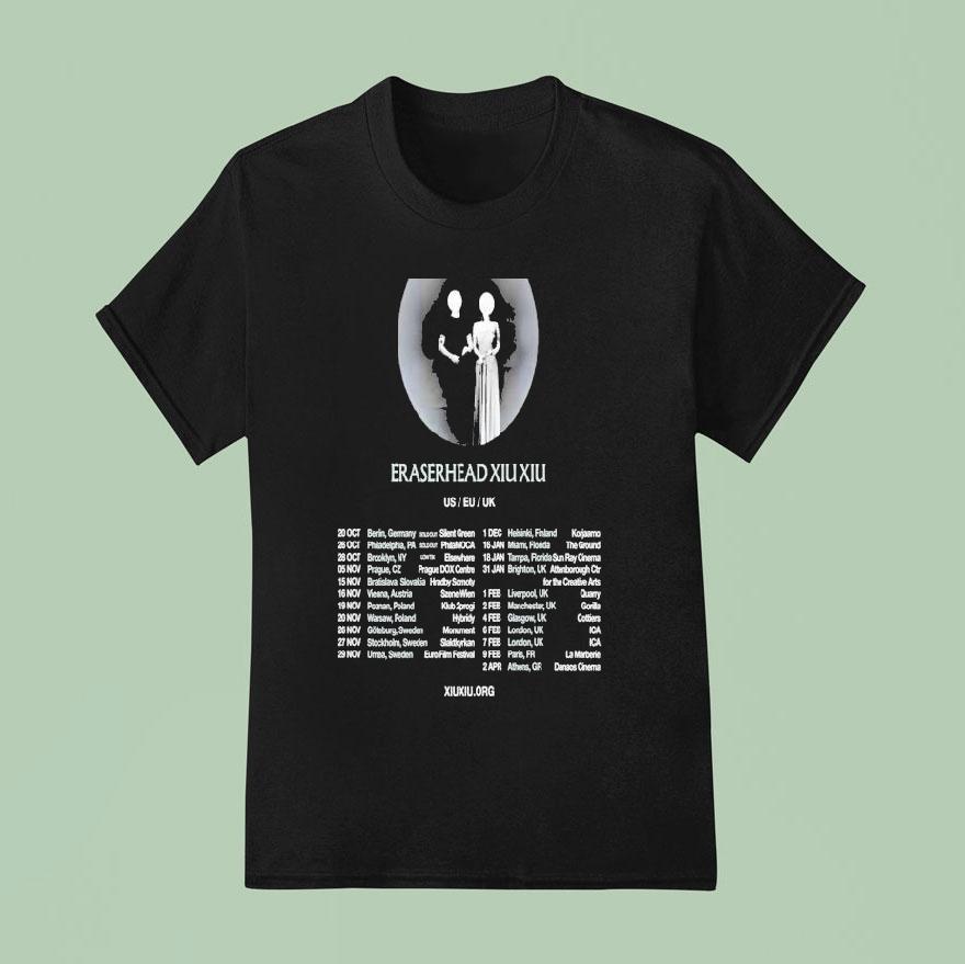 Elevate your casual look with Eraserhead Xiu Xiu Us Eu Uk Tour 2025-2026 Dates Shirt, get ready to erase your worries and immerse yourself in the experimental sounds of Eraserhead Xiu Xiu! The avant-garde group is embarking on a world tour in 2025-2026, gracing fans in the US, EU, and UK with their unique blend of music. Gear up with the official tour dates shirt and join the journey.