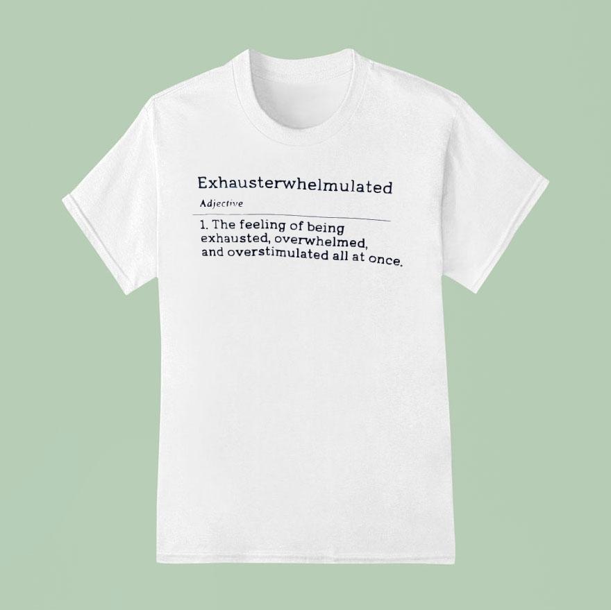 Classic tee, modern twist with Exhausterwhelmulated Adjective Meaning Definition Shirt, are you feeling exhausterwhelmulated by the pressures of daily life? Look no further than our new definition shirt to perfectly express your overwhelmed state. With a clear and clever adjective meaning, this shirt is both stylish and relatable.