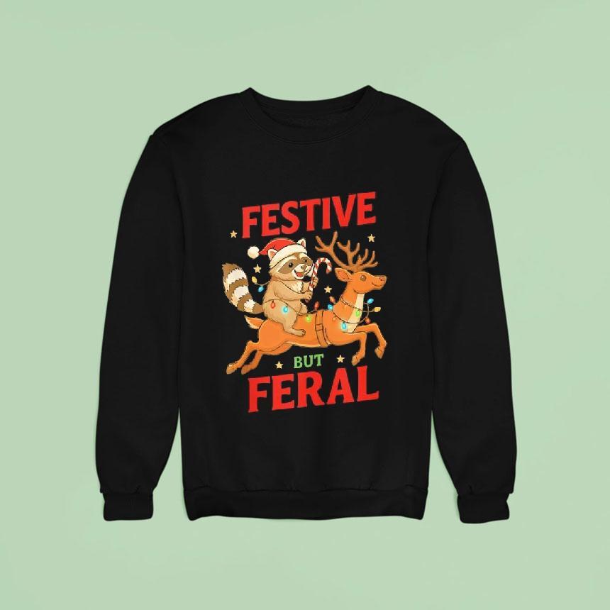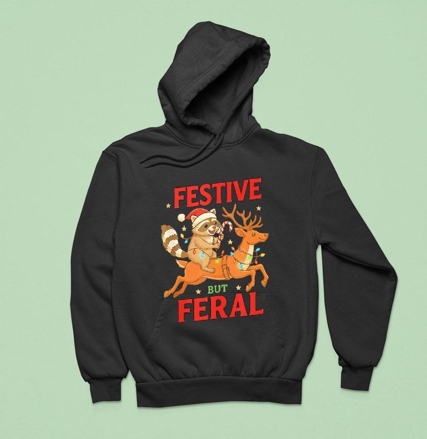 Effortless fashion update with Festive But Feral Christmas Raccoon Riding Reindeer Shirt, get ready to rock the holiday season with the trendiest fashion statement – a festive but feral Christmas raccoon riding reindeer shirt! This unique and playful design is sure to turn heads and add some wild flair to your winter wardrobe.