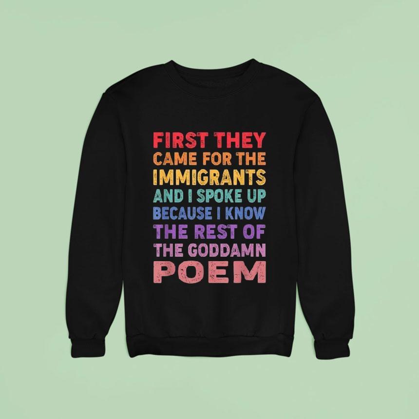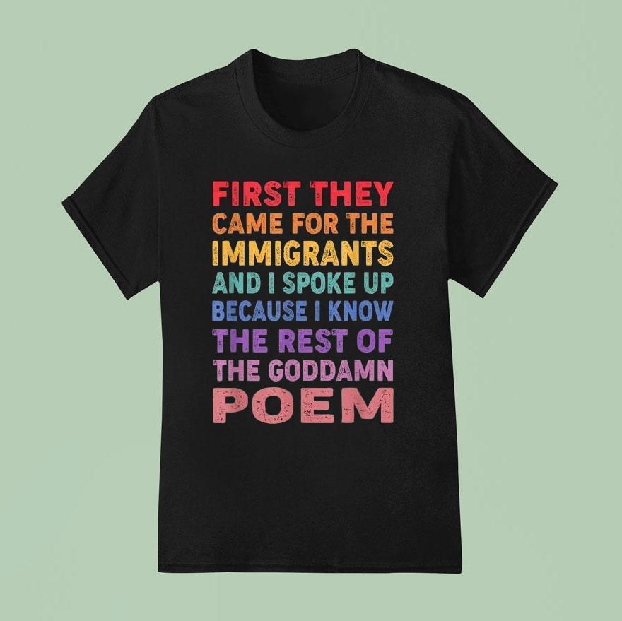 Casual sophistication with First They Came For The Immigrants And I Spoke Up Because I Know The Rest Of The Goddamn Poem Shirt,