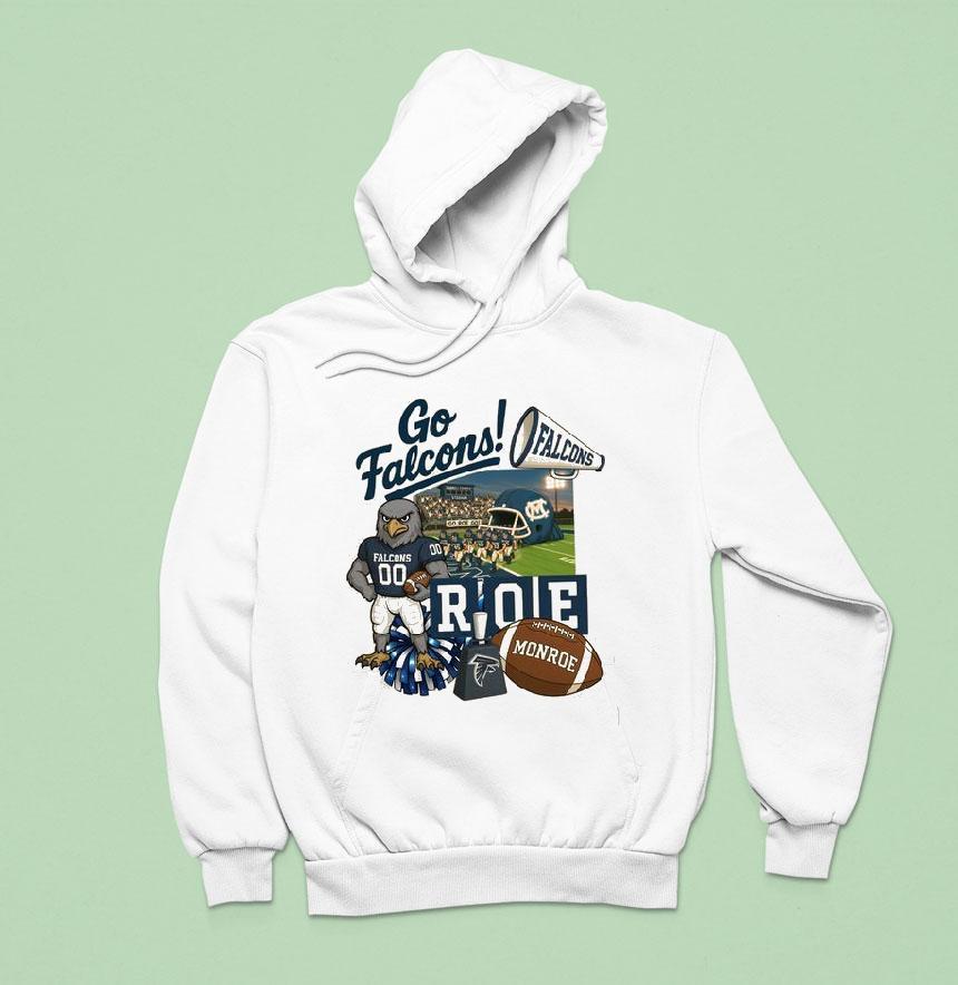 Wearable confidence booster with Friday Night Lights With The Monroe Falcons Shirt, as the sun sets on the small town of Monroe, the lights of the high school football field illuminate the Friday night sky. The cheers from the stands mix with the sound of pads hitting the turf, and the fans proudly sport their Monroe Falcons shirts, ready for another exciting game.