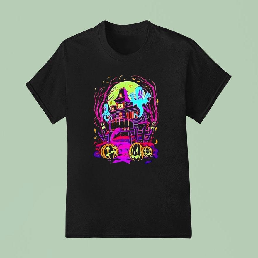 Classic charm, modern edge with Ghost Halloween House Shirt, as the cool breeze rustled through the eerie trees, the old abandoned house stood in the moonlight, its windows shattered and doors creaking. But what caught my eye was the apparition of a ghostly figure, clad in a haunting Halloween house shirt, beckoning me to enter its haunted halls.