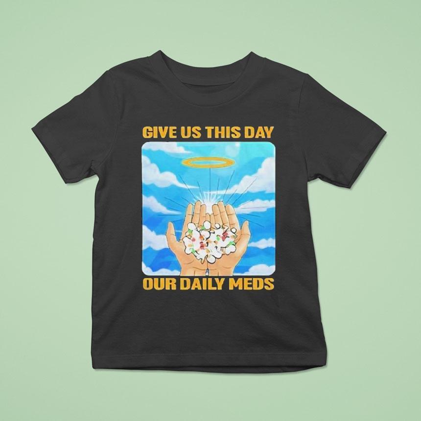 Wardrobe essential, always chic with Give Us This Day Our Daily Meds Heaven Shirt, looking for a heavenly addition to your wardrobe? Look no further than the “Give Us This Day Our Daily Meds” shirt. With a playful twist on a classic prayer, this shirt is sure to become your daily dose of style. Get yours today!