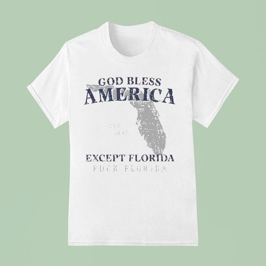 Dress it up or down with God Bless America Except Florida Fuck Florida State Est 1845 Shirt, celebrate the Land of the Free and Home of the Brave with the God Bless America Except Florida Fuck Florida State Est 1845 Shirt. This bold and patriotic design is perfect for showing your love for the USA while also expressing your disdain for a certain southern state.