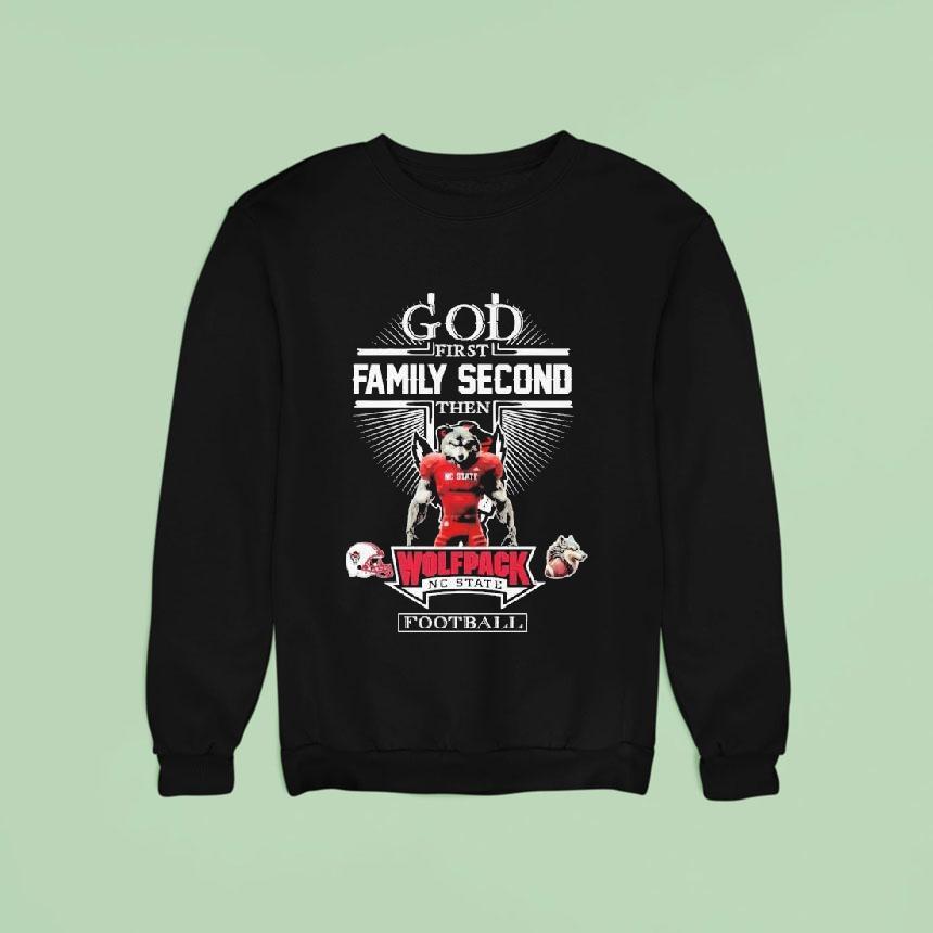 Casual chic, timeless appeal with God First Family Second Then Nc State Wolfpack Football Mascot Shirt, are you a proud supporter of the Nc State Wolfpack and their football team? Show off your dedication to the team with our God first, family second, Nc State Wolfpack football mascot shirt. Wear it with pride and cheer on your favorite team with their iconic mascot by your side.