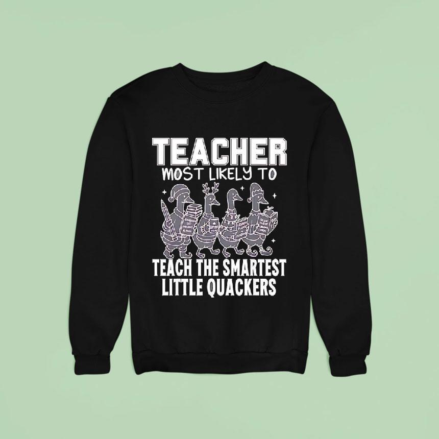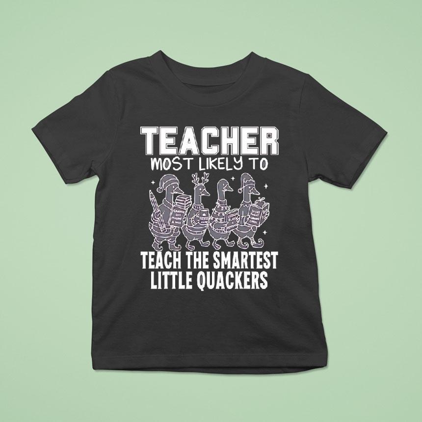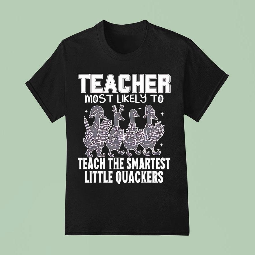 Chic simplicity, everyday charm with Goose Teacher Most Likely To Teach The Smartest Little Quackers Shirt, attention all geese in search of a new wardrobe staple! Introducing the Goose Teacher Most Likely To Teach The Smartest Little Quackers Shirt – the must-have apparel for all smart and savvy geese out there. Perfect for a day in the classroom or a casual stroll around the pond.