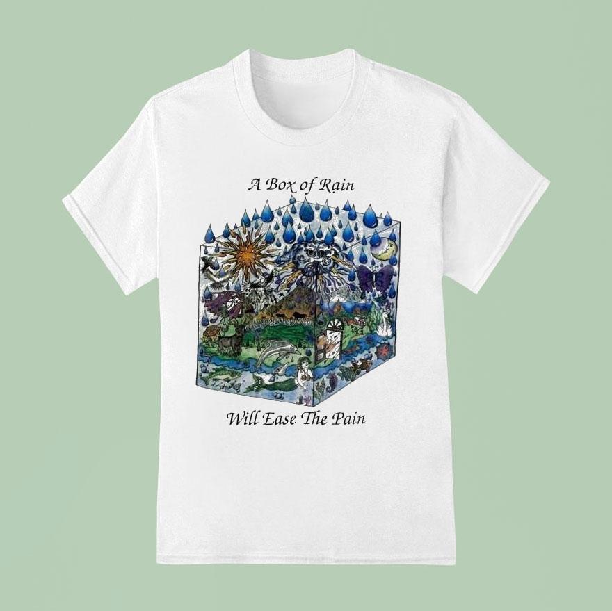 Everyday ease, endless style with Grateful Dead A Box Of Rain Will Ease The Pain Shirt, for Grateful Dead fans, a box of rain was a symbol of hope and comfort during tough times. And now, with this A Box Of Rain Will Ease The Pain t-shirt, you can wear that sentiment and show your love for the iconic band.