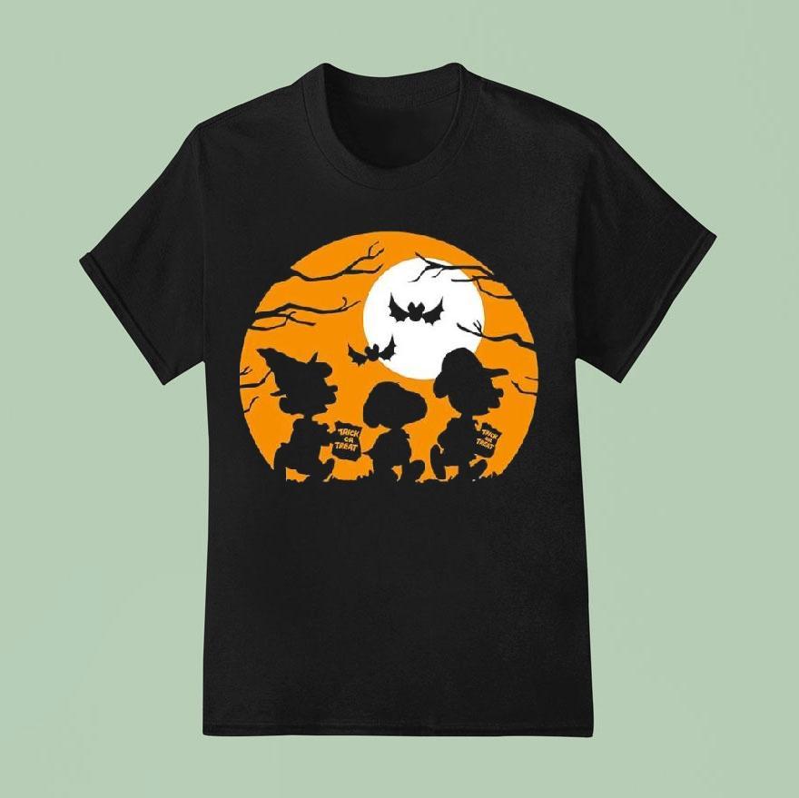 Your style, your tee with Great Pumpkin Charlie Brown Peanuts Trick Or Treat Silhouettes Shirt, get ready to celebrate Halloween in style with the Great Pumpkin Charlie Brown Peanuts Trick Or Treat Silhouettes Shirt! This nostalgic shirt captures the iconic scene of the gang going door to door in their costumes. A must-have for any Peanuts fan and perfect for a spooky night out.