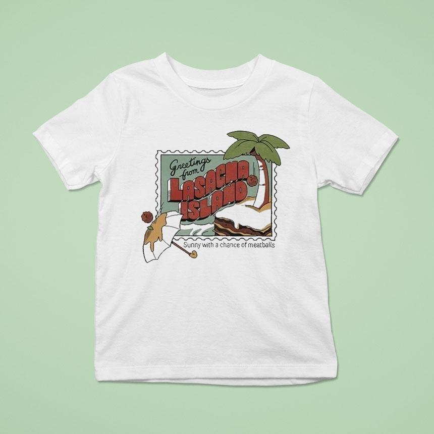 Classic charm, modern edge with Greetings From Lasagna Island Sunny With A Chance Of Meatballs Shirt, welcome to Lasagna Island, where the sun is always shining and the meatballs are always falling from the sky! To commemorate this unique place, we have designed the perfect shirt – the “Greetings From Lasagna Island Sunny With A Chance Of Meatballs Shirt”. Let’s dig in!