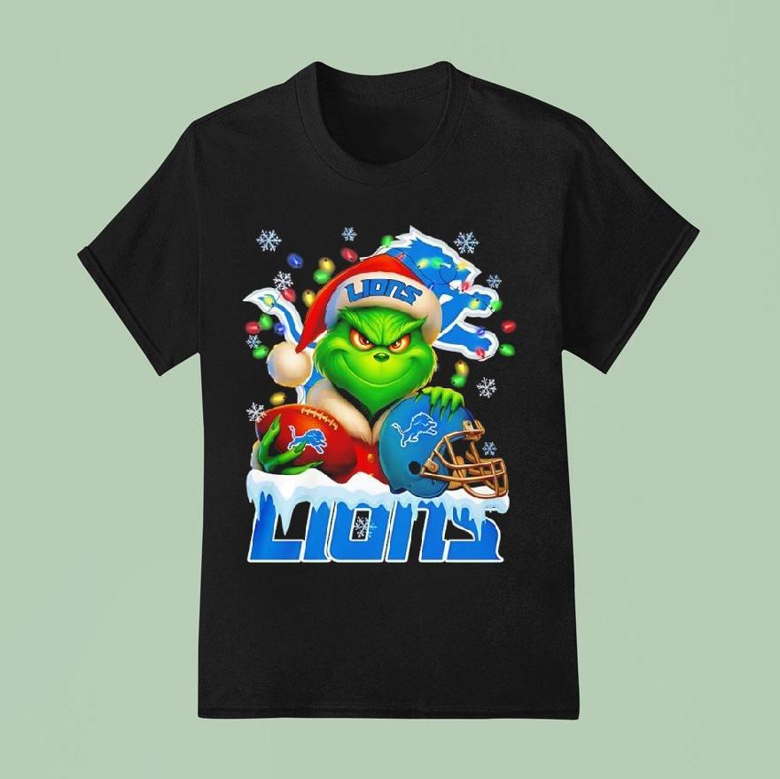 Simple sophistication, all day with Grinch And Detroit Lions Christmas Theme Helmet Shirt, attention all Grinch fans and Detroit Lions supporters! Get ready to spread some holiday cheer this Christmas with the perfect combination of green and blue on our Grinch and Detroit Lions Christmas theme helmet shirt. Show off your love for both the Grinch and the Lions with this festive shirt.