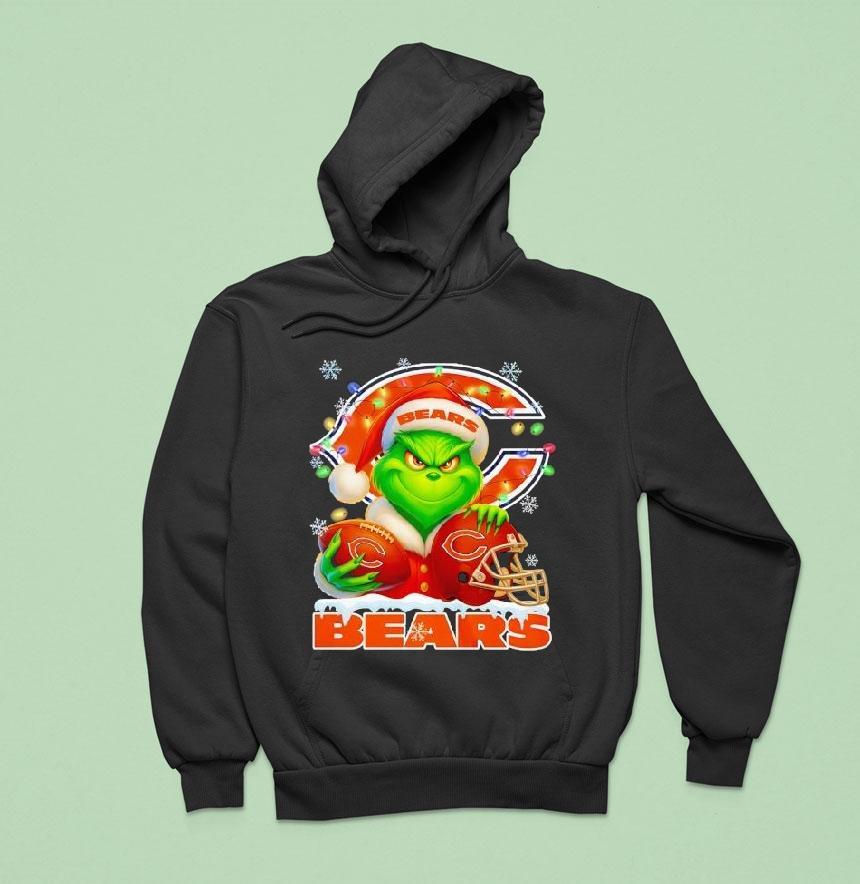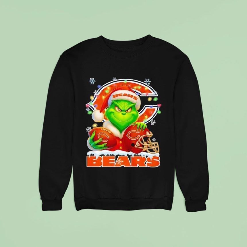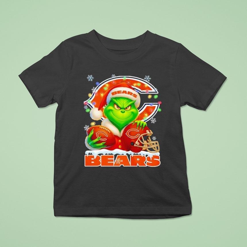 Uncomplicated style choice with Grinch Holding Football And Helmet Chicago Bears Merry Christmas Shirt, ‘Tis the season to be jolly, but the Grinch was feeling quite contrary. Sporting a Chicago Bears Merry Christmas shirt, he held a football and helmet in hand, plotting his devious plan. Will he steal the holiday cheer or join in on the festive fun? Only time will tell.