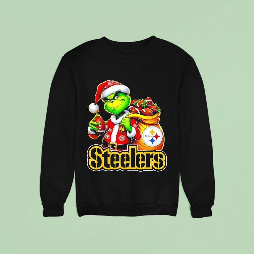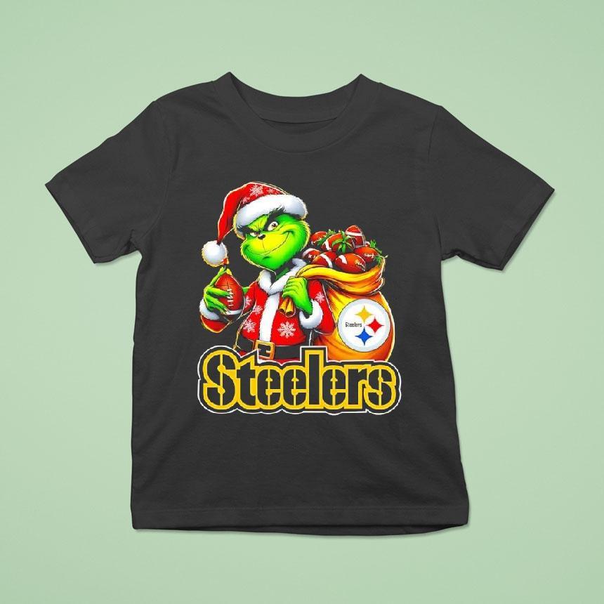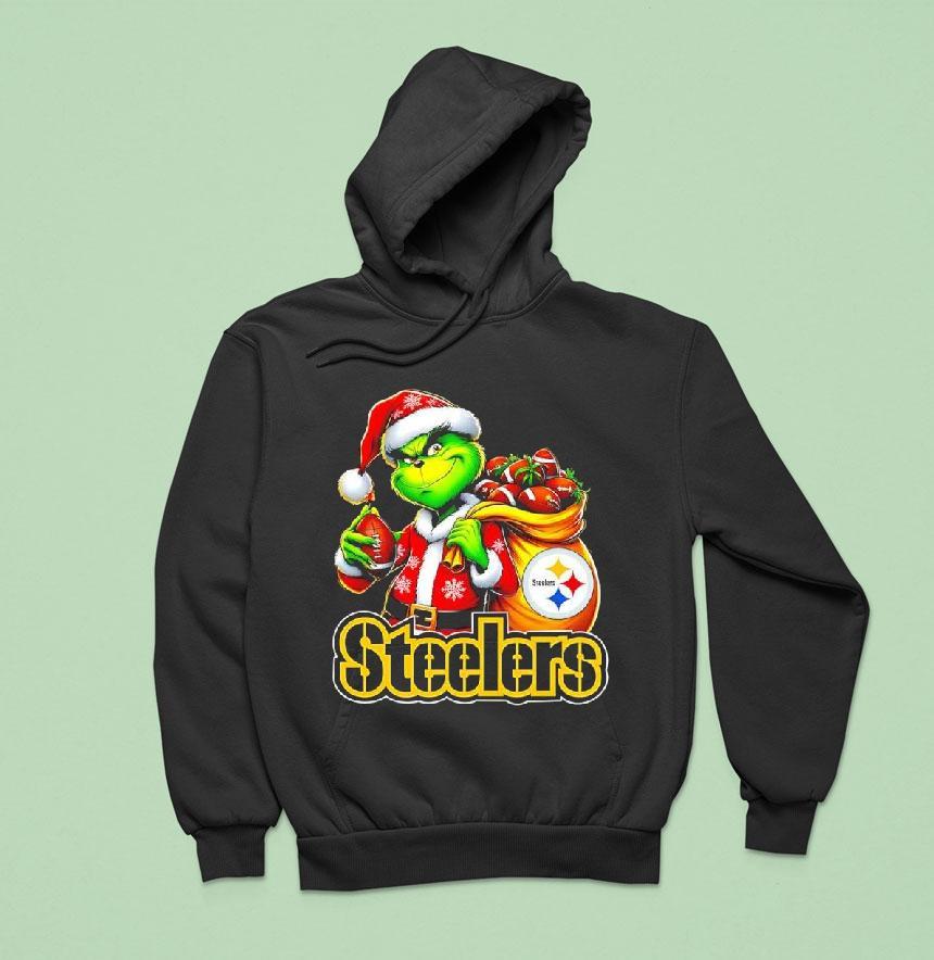 Effortlessly cool with Grinch Holding Pittsburgh Slers Grinchmas Shirt, the iconic Grinch is no longer green and mean, but now he’s sporting a Pittsburgh Steelers Grinchmas shirt! Get ready to steal the show this holiday season with this festive and football-inspired gear, guaranteed to make your heart grow three sizes.