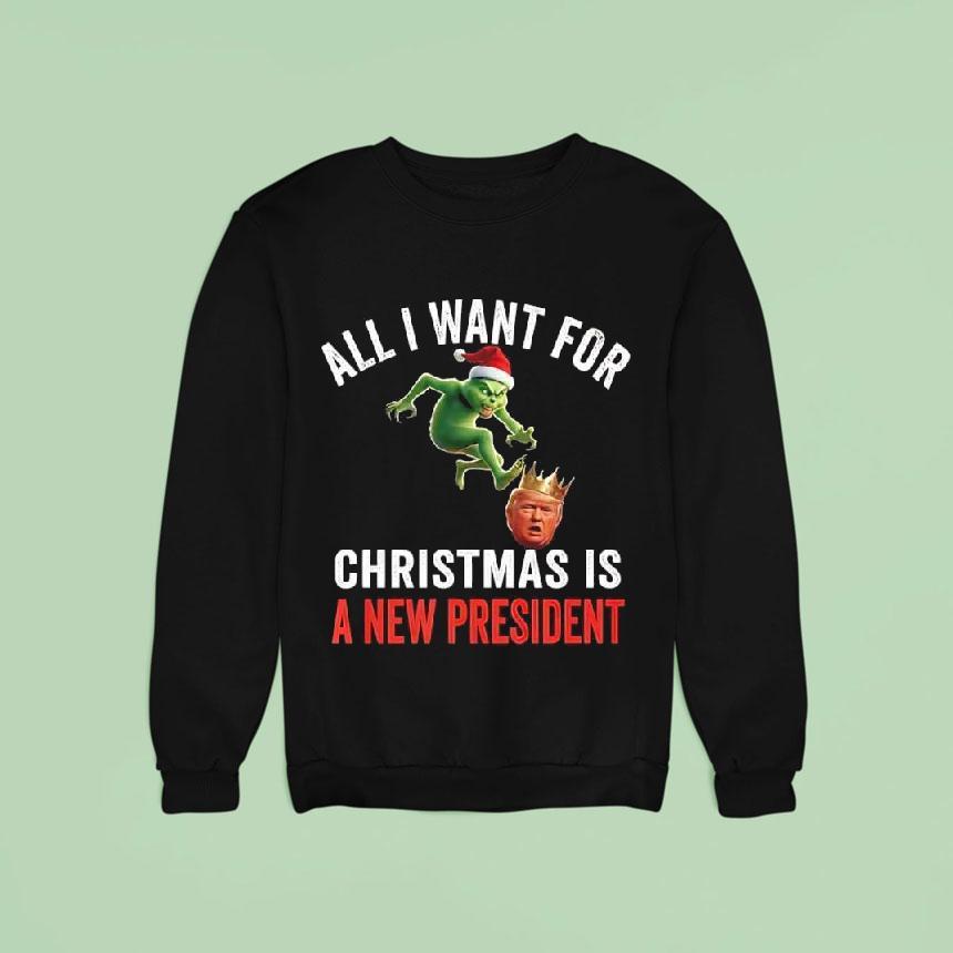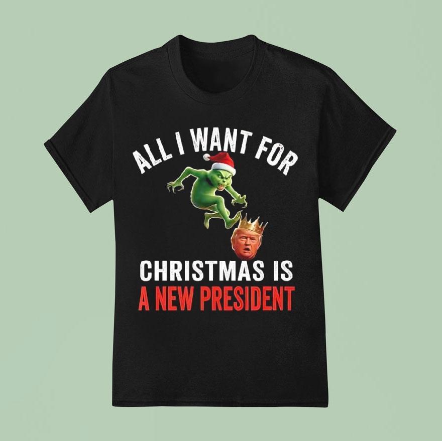 Wearable confidence booster with Grinch Trump King All I Want For Christmas Is A New President Shirt, as the holiday season approaches, there is no denying the excitement and cheer in the air. However, for many Americans, the thought of a Grinch-like King Trump ruling the nation is a cause for concern. All they want for Christmas is a new leader, and they’re proudly showing it with the “Grinch Trump King” shirt.