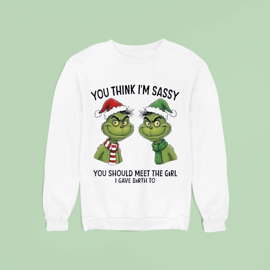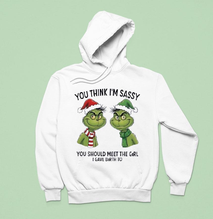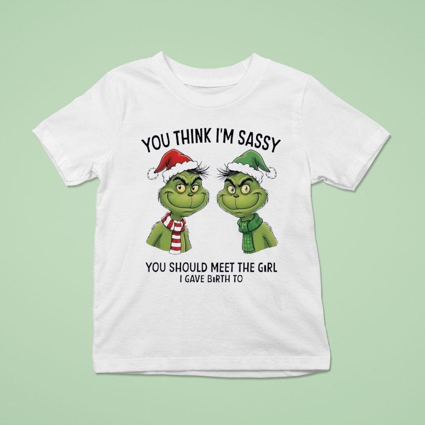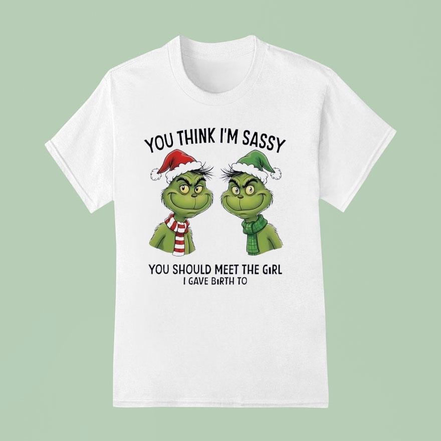 Your go-to casual choice with Grinch You Think I’m Sassy You Should Meet The Girl I Gave Birth To Shirt, forget the green and furry Grinch, there’s a new sassy troublemaker in town. Introducing the “Grinch You Think I’m Sassy You Should Meet The Girl I Gave Birth To” shirt, perfect for all the feisty females out there who aren’t afraid to speak their minds.