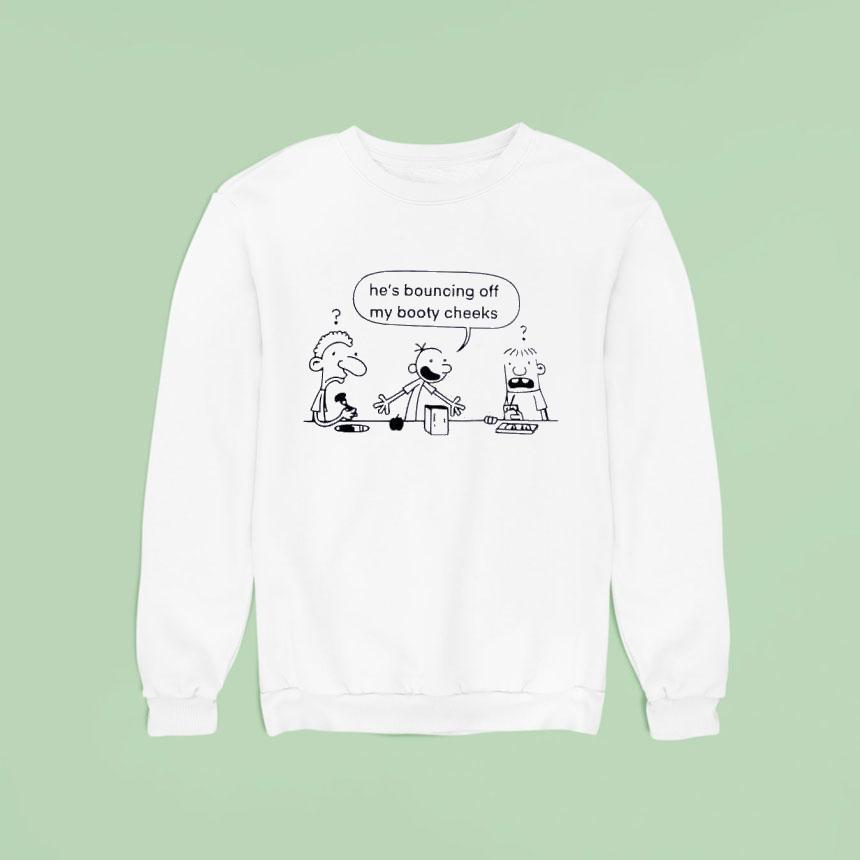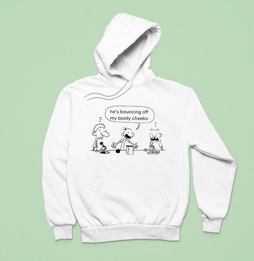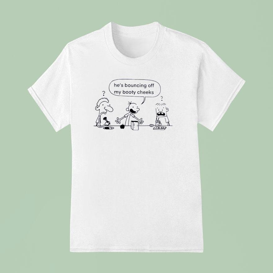 Casual comfort, chic look with He’s Bouncing Off My Booty Cheeks Diary Of A Wimpy Kid Shirt, get ready to laugh out loud with the hilarious new “He’s Bouncing Off My Booty Cheeks Diary Of A Wimpy Kid Shirt”. This cleverly designed shirt captures all the funny moments and adventures of a wimpy kid, making it a must-have for any fan. Get yours now and join in on the fun!