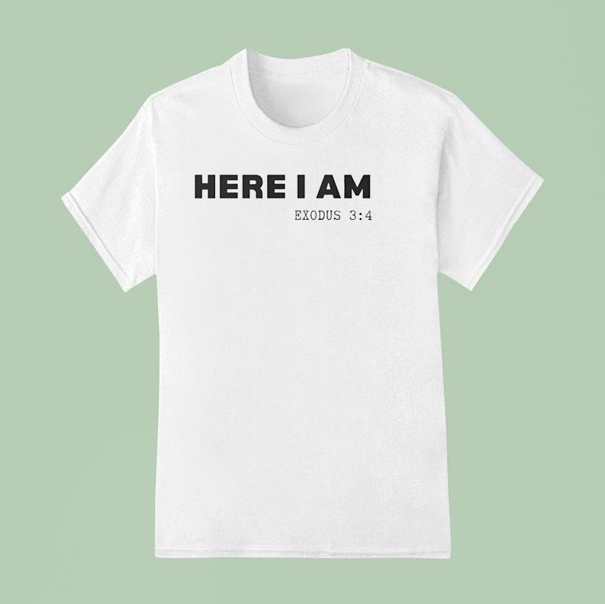 Wardrobe must-have with Here I Am Exodus Shirt, the Here I Am Exodus Shirt is the ultimate statement piece for those seeking to make a bold statement. With its striking design and meaningful message, this shirt exudes confidence, courage, and strength. Get ready to stand out and embrace your true self with the Here I Am Exodus Shirt.