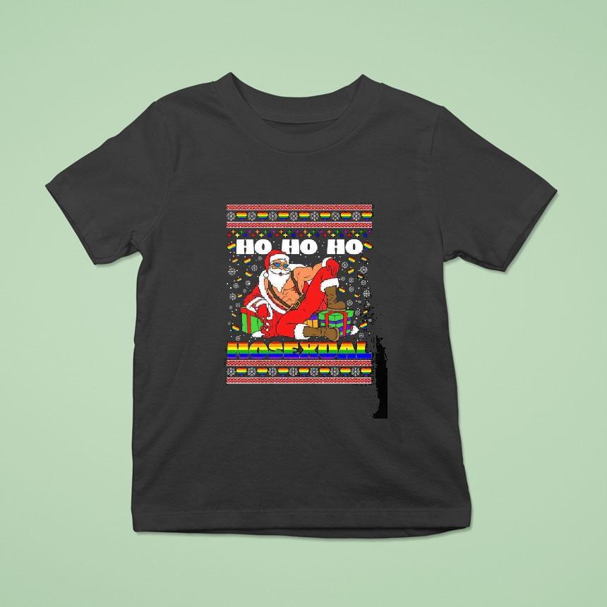 Uncomplicated style choice with Ho Ho Ho Santa Homosexual Christmas Ugly Shirt, the most magical time of the year is almost here, and it’s time to embrace the festive spirit with a Ho Ho Ho! But this Christmas, why not show your support for the LGBTQ+ community with a Santa Homosexual Christmas Ugly Shirt. Spread love and joy this holiday season!