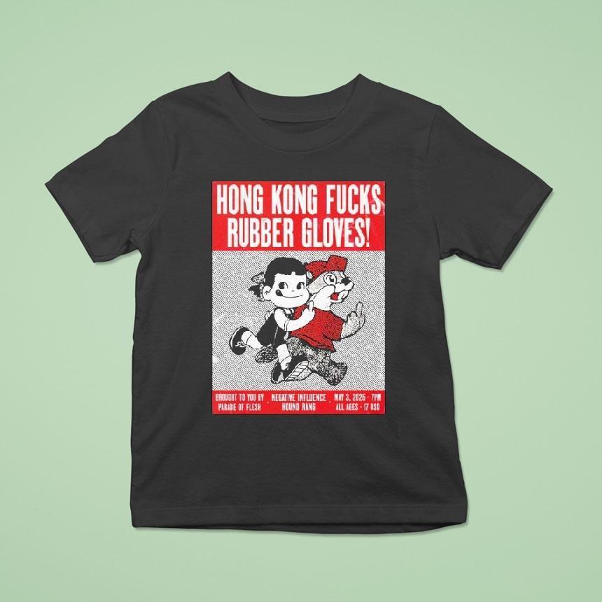 Versatile fashion, timeless appeal with Hong Kong Fuck You At Rubber Gloves Brought To You By Parade Of Flesh May 3 2025 Event Shirt, welcome to the ultimate punk rock event in Hong Kong! Get ready to mosh and scream “Fuck You” at the top of your lungs, all while wearing your limited edition rubber gloves from the Parade of Flesh on May 3, 2025. This is a show you won’t want to miss.