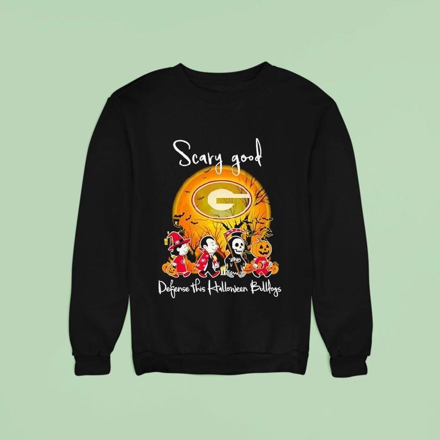 Chic basics, maximum impact with Horror Characters Scary Good Defense This Halloween Georgia Bulldogs Shirt, as Halloween approaches, horror fans are on the hunt for the perfect costume. Look no further than this officially licensed Georgia Bulldogs shirt featuring iconic horror characters and a scary good defense. Get ready to spook and support your team in style.