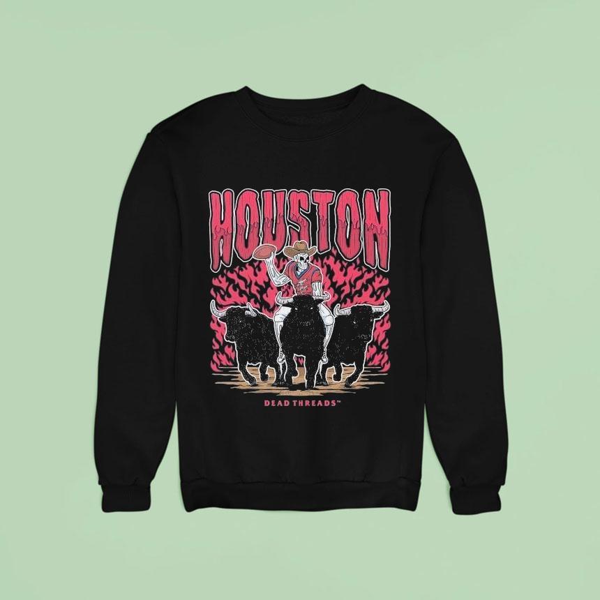 Dress it up or down with Houston Texans Dead Threads Skeleton Shirt, the Houston Texans Dead Threads Skeleton Shirt is the perfect way for fans to show their team spirit with a spooky twist. This unique shirt features a skeleton version of the Texans’ logo, making it a must-have for any die-hard fan looking to stand out in the crowd.