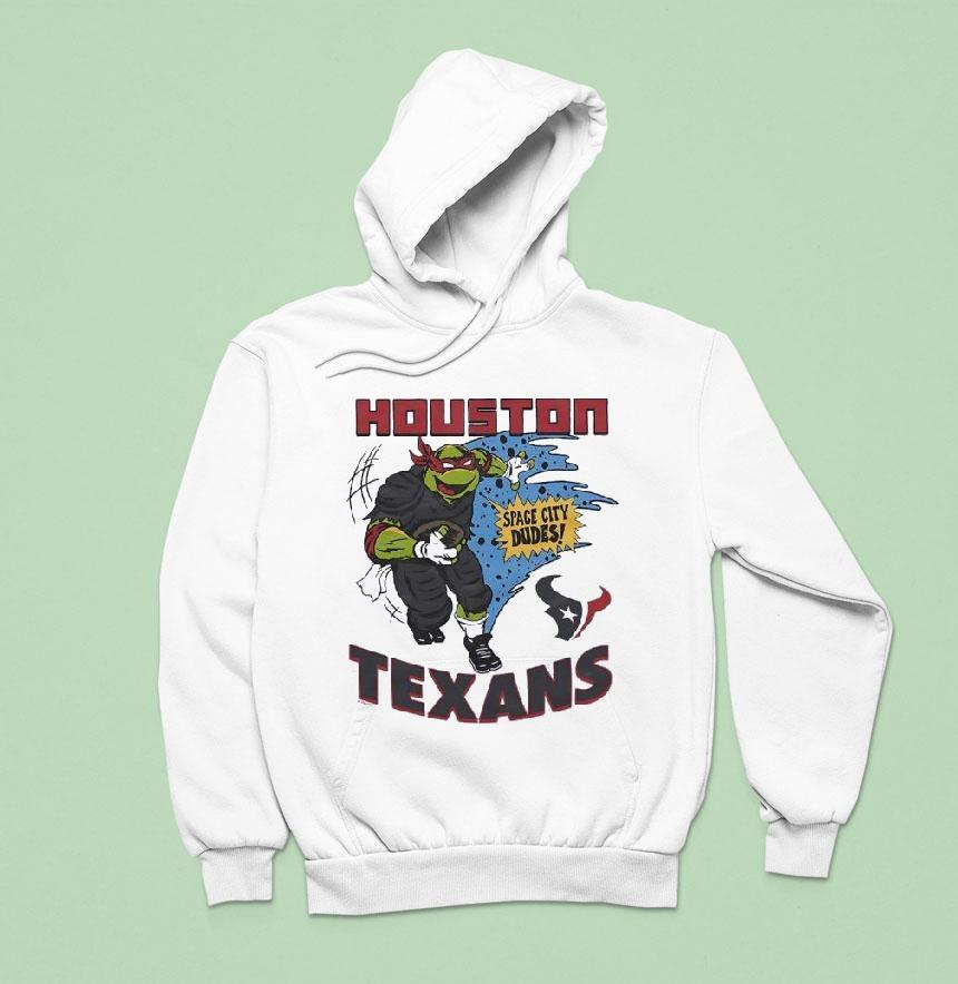 Easy-going style staple with Houston Texans X Nage Mutant Ninja Turtles Space City Dudes Shirt, get ready to show off your love for both the Houston Texans and the Teenage Mutant Ninja Turtles with the new Space City Dudes shirt! This trendy tee combines two fan favorites into one stylish design that is a must-have for any true Houston Texans fan.