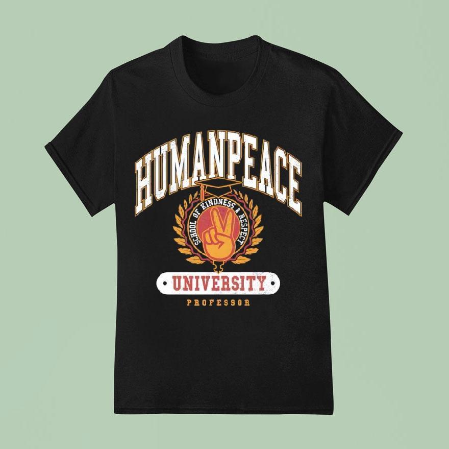 Sleek simplicity, ultimate comfort with Human Peace University Professor School Of Kindness And Respect Shirt, welcome to Human Peace University, where kindness and respect are the cornerstone values. Our professors not only teach, but also embody these values, as seen in the official School of Kindness and Respect shirt. Join us in spreading peace and positivity through our educational community.