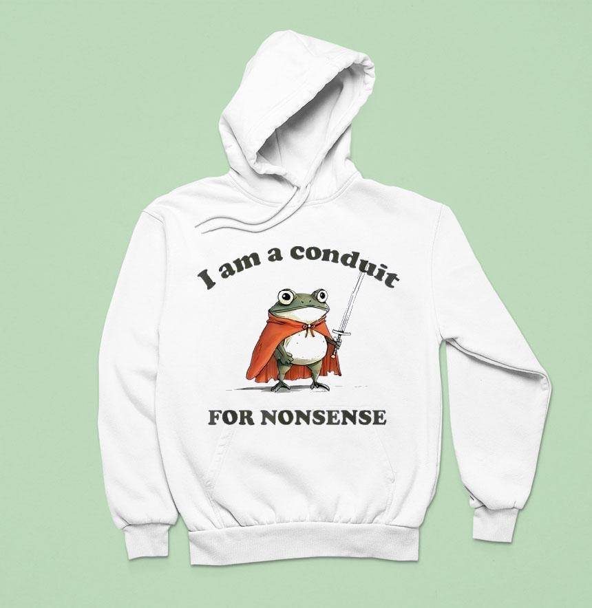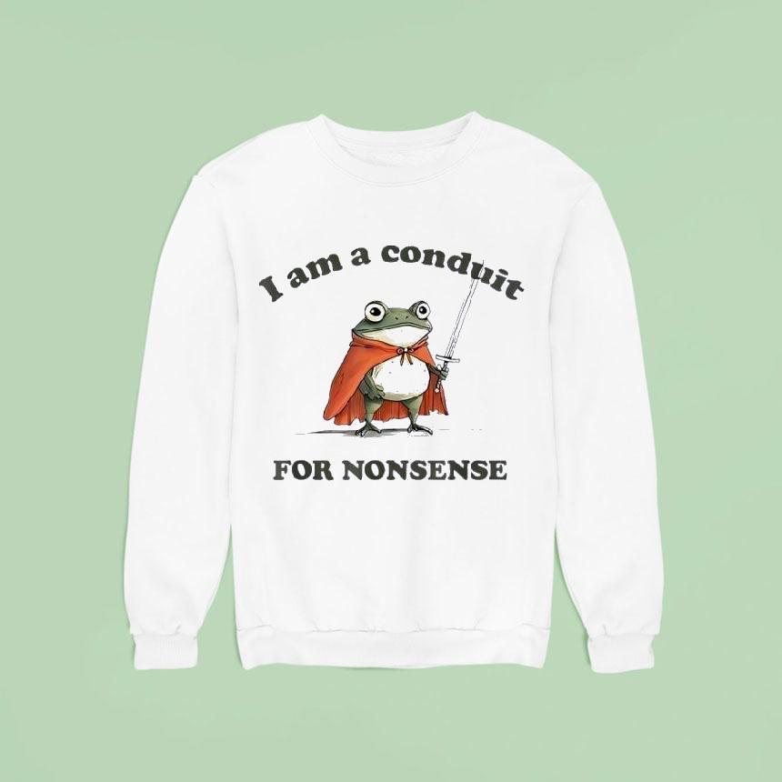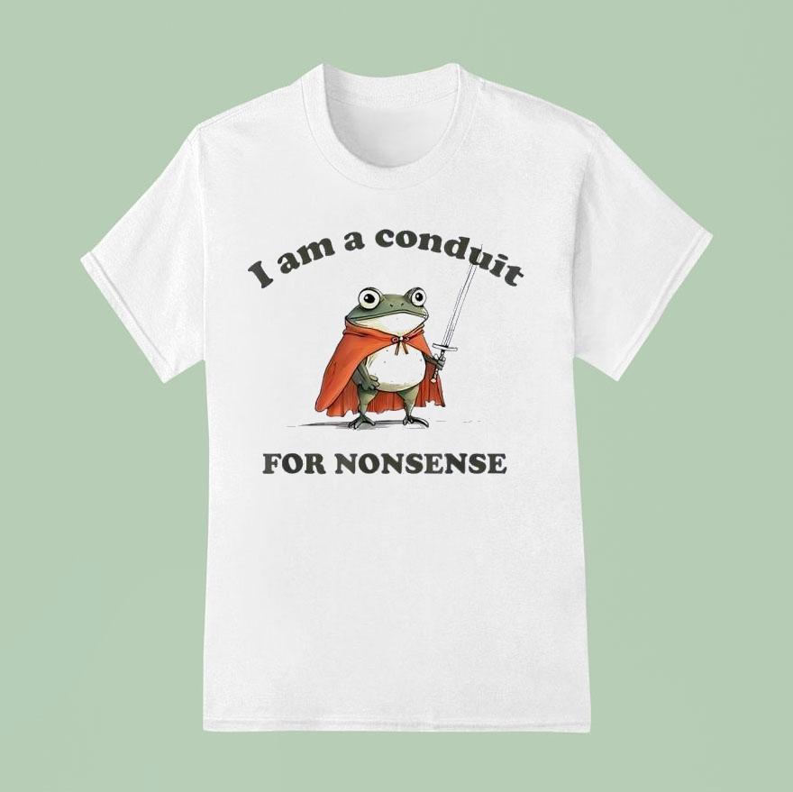 Versatile fashion, always with I Am A Conduit For Nonsense Frog Shirt, “I am a walking canvas for absurdity, dressed in a vibrant frog shirt that proudly proclaims my role as a conduit for nonsense. With a mischievous glint in my eye, I embrace the chaotic and whimsical energy that surrounds me.”