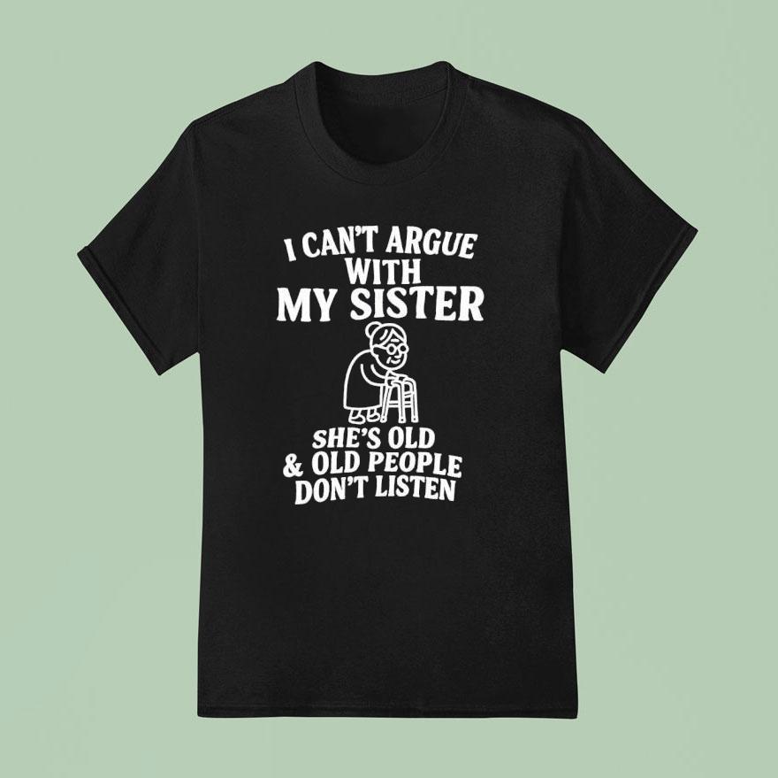 Wardrobe must-have with I Can’t Argue With My Sister She’s Old And Old People Don’t Listen Shirt, as siblings, we often find ourselves in disagreements with our brothers or sisters. But when it comes to arguing with an older sibling, it can feel like an impossible task. After all, they have years of life experience and the wisdom that comes with age. And with the addition of the “I Can’t Argue With My Sister She’s Old And Old People Don’t Listen” shirt, the debate is surely over before it even begins.