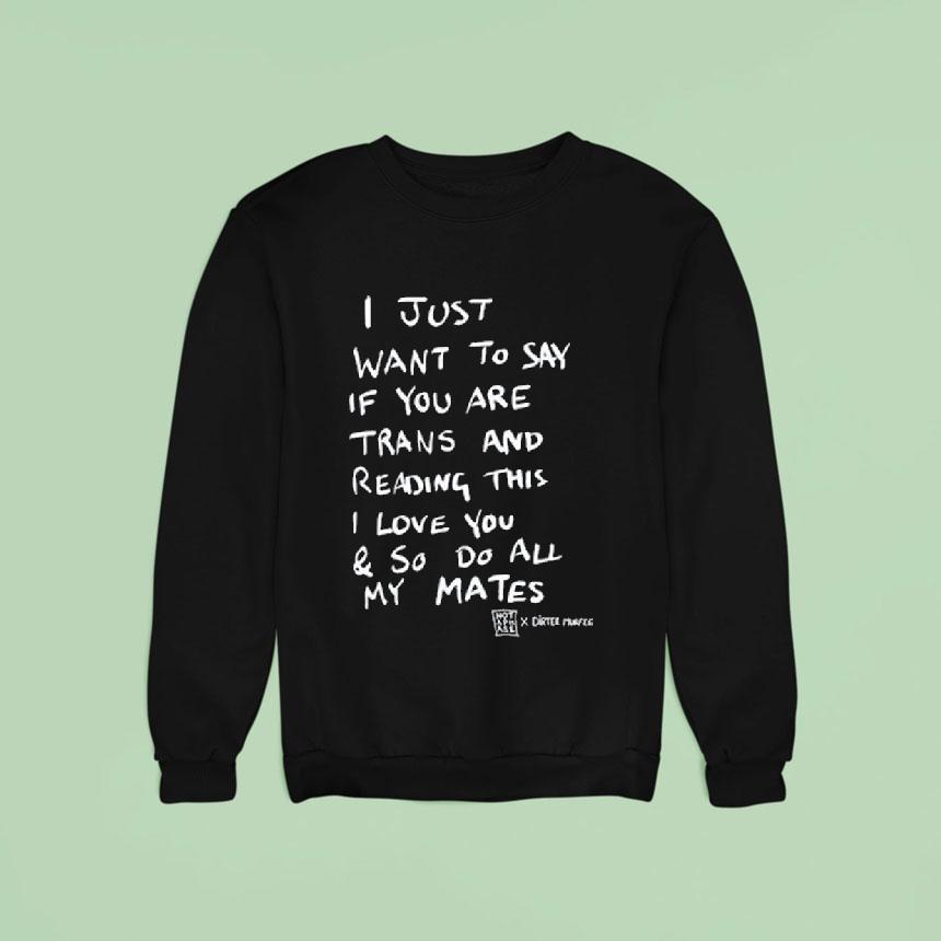 Your fashion canvas with I Just Want To Say If You Are Trans And Reading This I Love You So Do All My Mates Shirt, attention all trans individuals! It’s time to spread some love and support. If you’re reading this, know that you are loved and accepted. Let this I Just Want To Say If You Are Trans And Reading This I Love You So Do All My Mates shirt be a reminder of that. You are not alone.