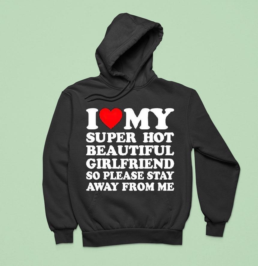 Effortless, everyday style with I Love Super Hot Beautiful Girlfriend So Please Stay Away From Me Shirt, attention all potential suitors, let it be known that I am hopelessly devoted to my stunningly attractive and fiery girlfriend. This “I Love Super Hot Beautiful Girlfriend So Please Stay Away From Me” shirt serves as a warning to anyone who dares to try and steal her away from me.