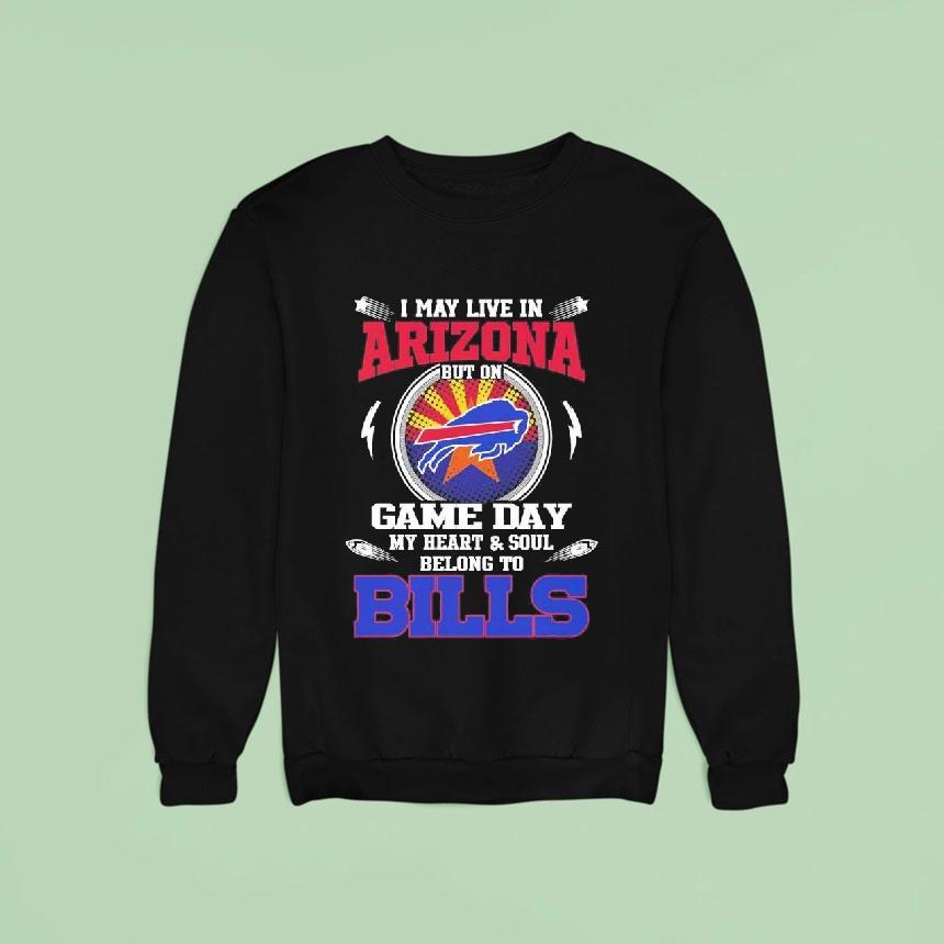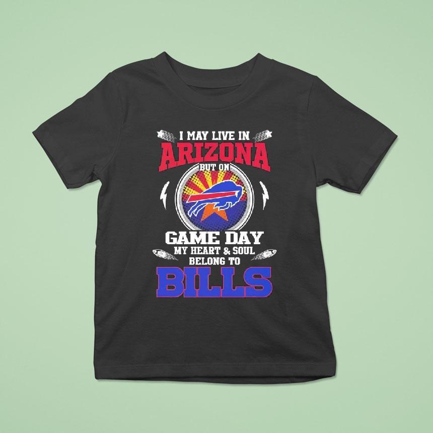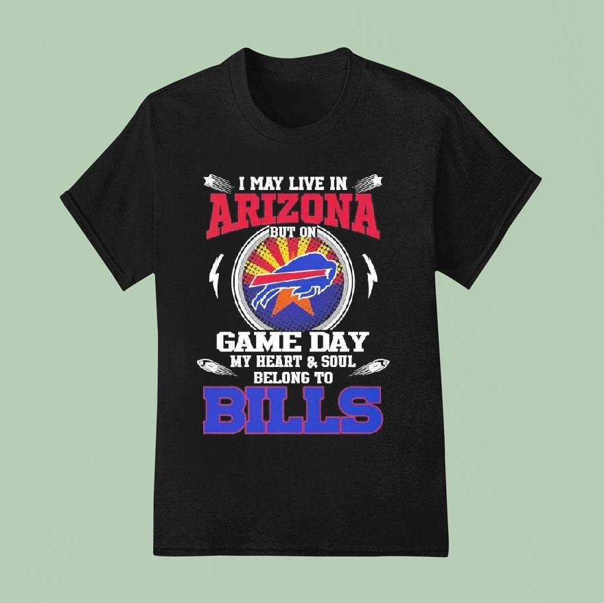 Elevate your casual look with I May Live In Arizona But On Game Day My Heart Soul Belong To Buffalo Bills 2025 Shirt, as a proud resident of Arizona, my loyalty to my home state runs deep. However, on game day, my heart and soul belong to the Buffalo Bills. With the upcoming 2025 season, I can’t wait to show my support with the perfect shirt that proudly declares my love for my team.