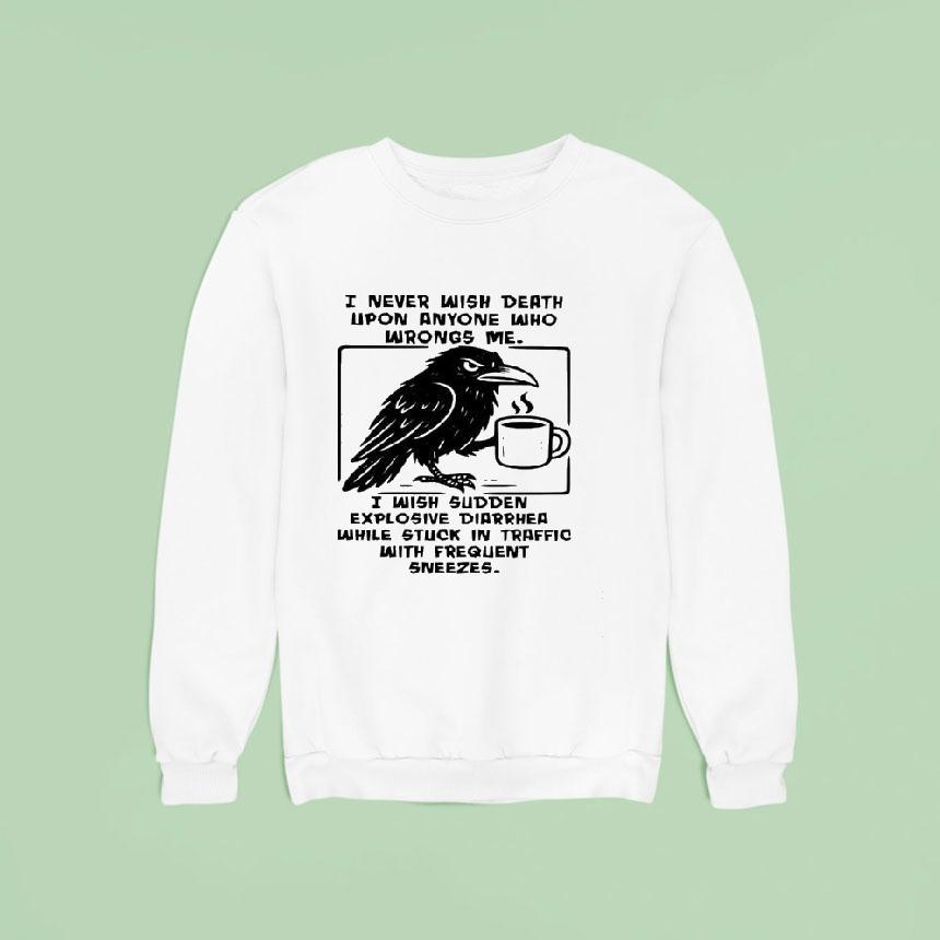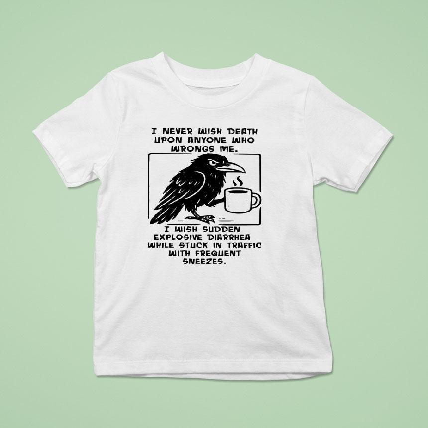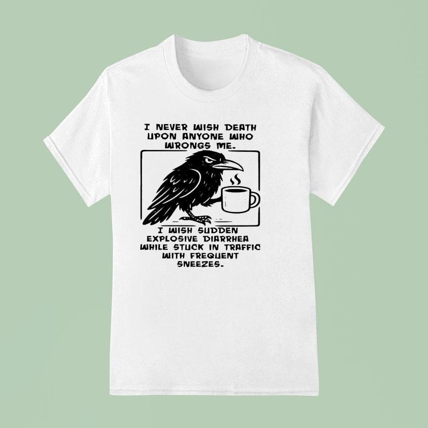 Casual chic, timeless appeal with I Never Wish Death Upon Anyone Who Wrongs Me I Wish Sudden Explosive Diarrhea While Stuck In Traffic Shirt, as humans, our first instinct may be to seek revenge upon those who have wronged us. But for me, wishing death upon anyone is never an option. Instead, I have a unique punishment in mind – a Sudden Explosive Diarrhea While Stuck In Traffic Shirt.