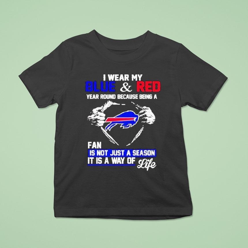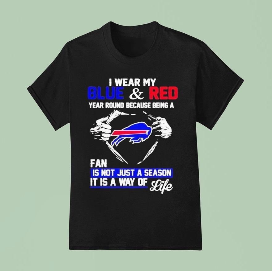 Your style, your way with I Wear My Blue And Red Year Round Because Being A Buffalo Bills Fan Is Not Just A Season It Is A Way Of Life Shirt, as a proud Buffalo Bills fan, I proudly wear my blue and red year round. Being a fan of this beloved team is more than just a seasonal passion, it’s a way of life. And nothing shows my dedication more than my favorite shirt.