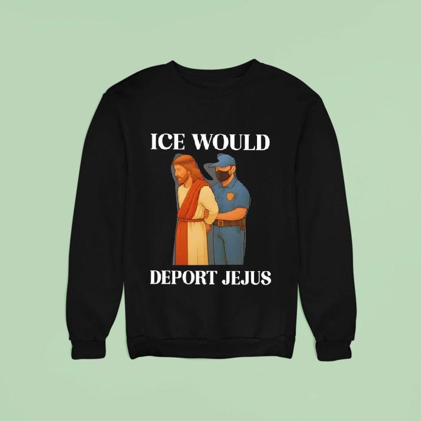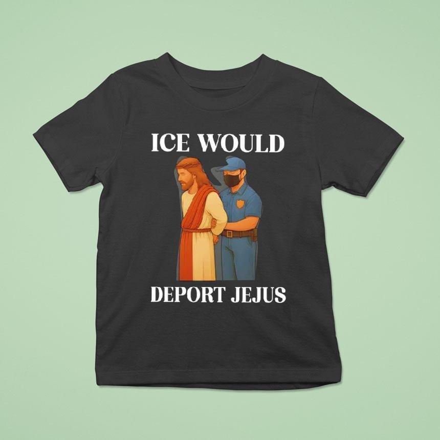 Chic simplicity, everyday elegance with Ice Would Deport Jejus Shirt, covered in thick frost, the atmosphere was frigid and it matched the icy glare in my eyes. The “Ice Would Deport Jejus” shirt on my back was an expression of my anger towards the country that was once my home, but now wanted to send me away.