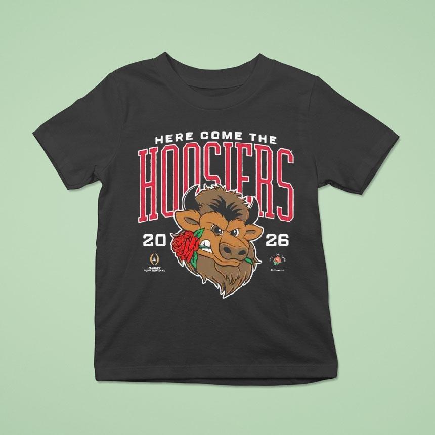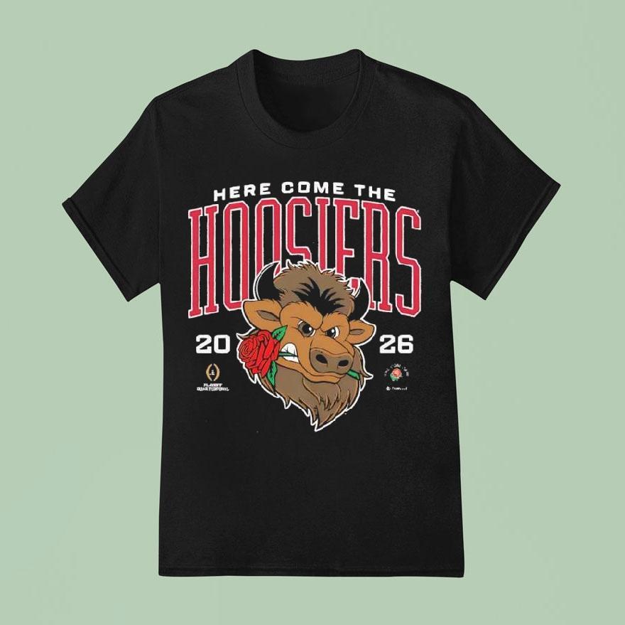 Comfort meets fashion with Indiana Here Come The Hoosiers 2026 Rose Bowl Game Shirt, get ready, Indiana fans! The Hoosiers are taking their talents to the 2026 Rose Bowl Game, and what better way to show your support than with the new Indiana “Here Come The Hoosiers” Rose Bowl t-shirt. Don’t miss out on this must-have piece for every die-hard fan.