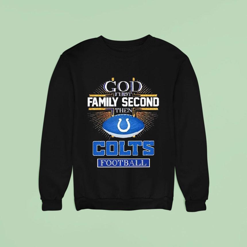 Effortless charm, everyday wear with Indianapolis Colts God First Family Second Then Colts Football Shirt, “Showcase your passion and faith with the Indianapolis Colts God First Family Second Then Colts Football Shirt. Cheer on your team while putting your values first and representing your love for the Colts. A perfect addition to any fan’s collection.”