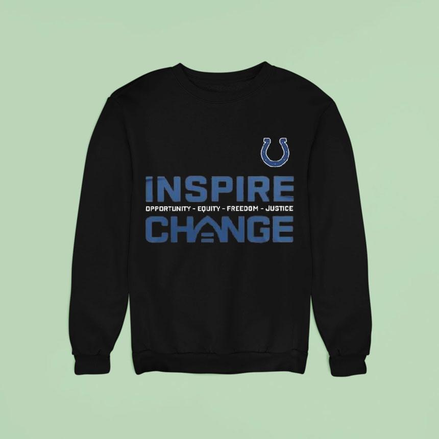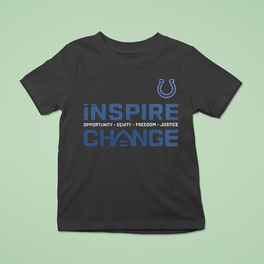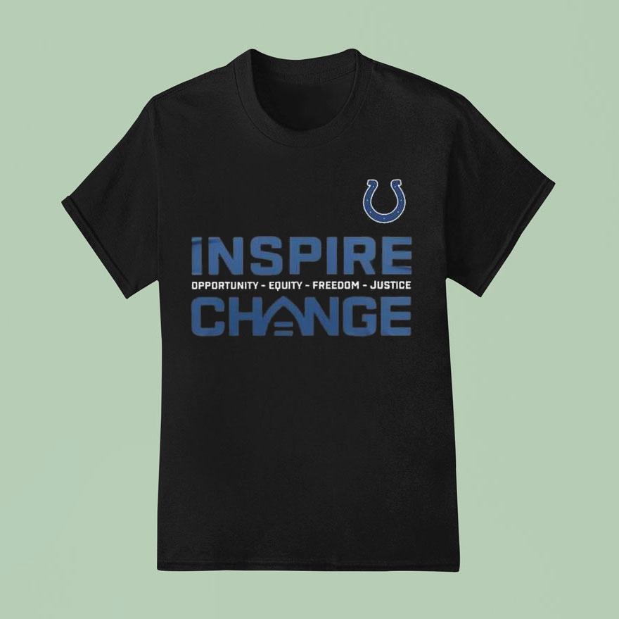 Your comfort, your style with Indianapolis Colts Inspire Change Opportunity Equity Freedom Justice Shirt, the Indianapolis Colts’ new “Inspire Change Opportunity Equity Freedom Justice” shirt serves as more than just team merchandise, it symbolizes the organization’s commitment to social justice and equality. As a beacon of hope and unity, the Colts are using their platform to inspire positive change in their community and beyond.