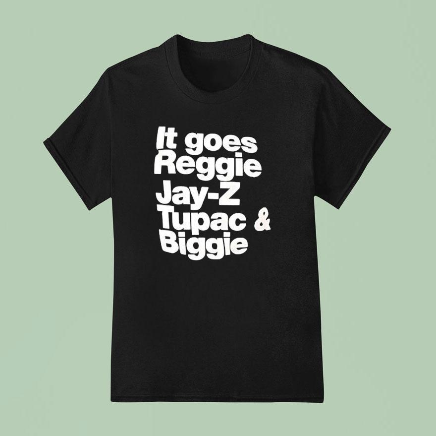 Classic tee, modern twist with It Goes Regiie Jay-z Tupac And Biggie Shirt, lovers of classic hip-hop and iconic fashion, rejoice! The “It Goes Regiie Jay-z Tupac And Biggie Shirt” is here to pay tribute to four legendary artists. With bold graphics and high-quality fabric, this shirt is a must-have for any music fan’s wardrobe. Let’s dive into the story behind this epic design.