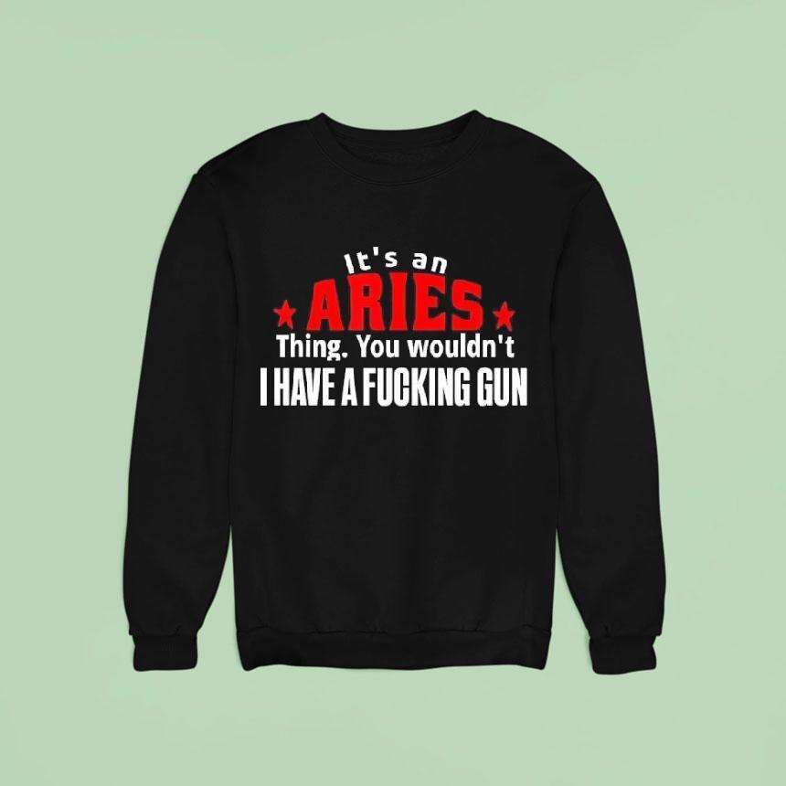Wardrobe essential, always chic with It’s An Aries Thing You Wouldn’t I Have A Fucking Gun Graphic Shirt, if you’re an Aries or know someone who is, you’ll know that their fiery and fearless nature is not to be messed with. And nothing says “don’t mess with me” quite like the “It’s An Aries Thing You Wouldn’t I Have A Fucking Gun” graphic shirt.