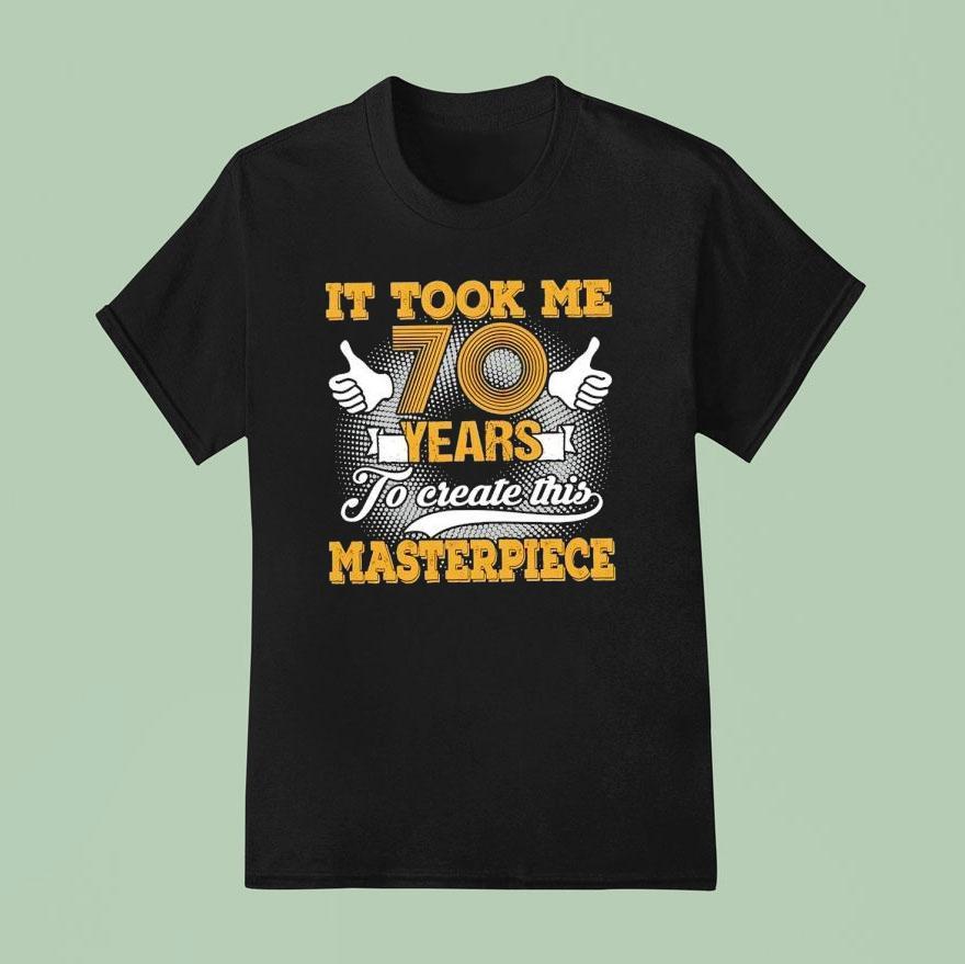 Uncomplicated style choice with It Took Me 70 Years To Create This Masterpiece Shirt, at the age of 70, after a lifetime of hard work and dedication, I am proud to unveil my latest creation – the masterpiece shirt. With every stitch and detail carefully crafted, it is a testament to the journey of my life and a symbol of my passion for the art of design.