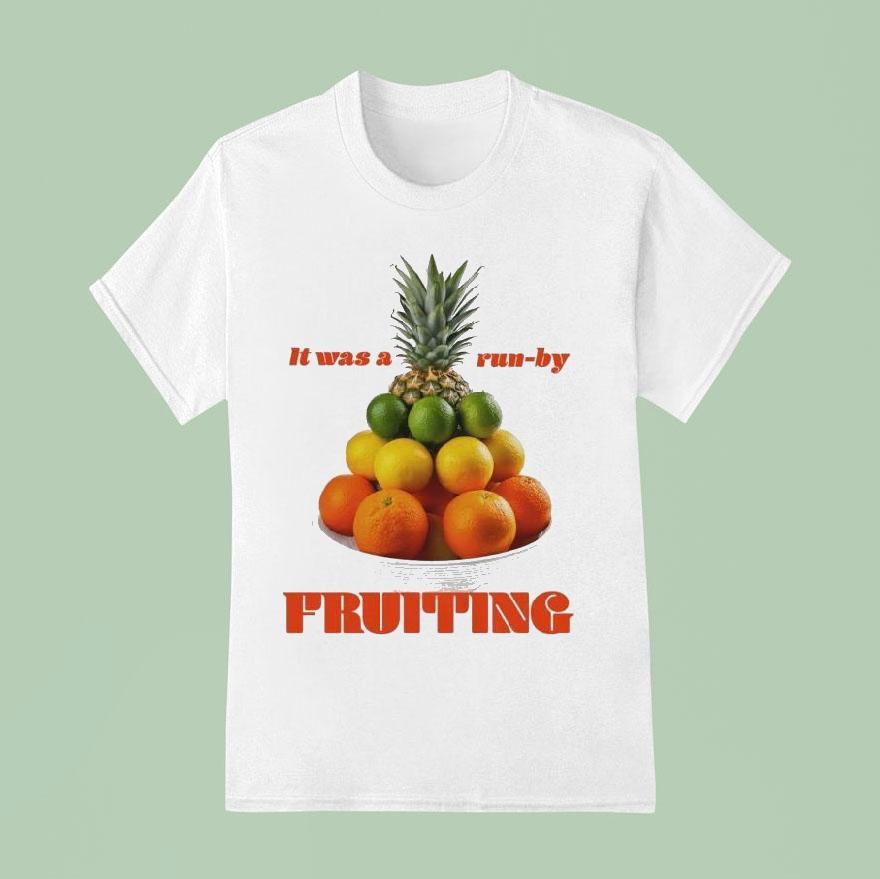 Comfortable confidence with It Was A Run-by Fruiting Shirt, with bright colors and bold lettering, the “It Was A Run-by Fruiting” shirt is a playful and eye-catching fashion statement. Add a hint of humor to your wardrobe and show off your love for iconic movie quotes with this quirky and unique shirt.