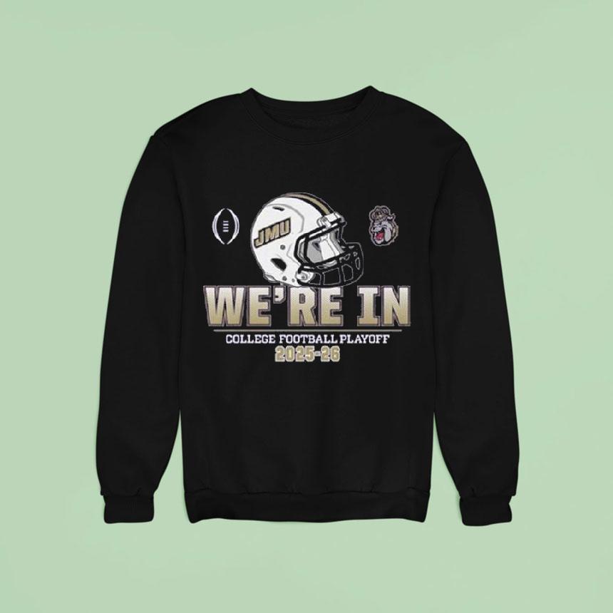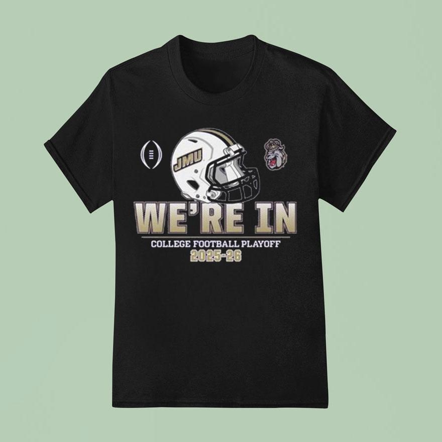 Effortless fashion flair with James Madison Dukes Sun College Football Playoff We’re In Helmet 2025-26 Shirt, get ready for the ultimate college football showdown as the James Madison Dukes gear up for the 2025-26 Sun College Football Playoff. And what better way to show your support than with their official helmet shirt, proudly displaying “We’re In” across the chest. Don’t miss out on the action!