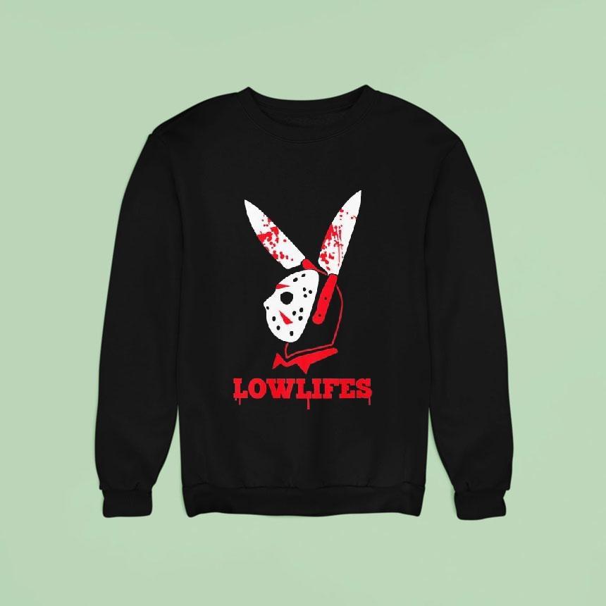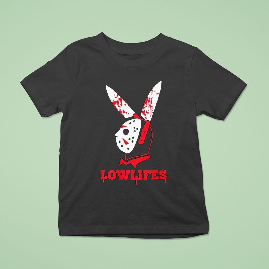 Casual sophistication with Jason Voorhees Lowlifes Killer Bunny Shirt, unleash your inner lowlife with the iconic Jason Voorhees killer bunny shirt. Pay homage to the infamous horror movie character as you channel your rebellious side with this unique and daring fashion statement. Stand out from the crowd and embrace your dark side with this bold and edgy design.