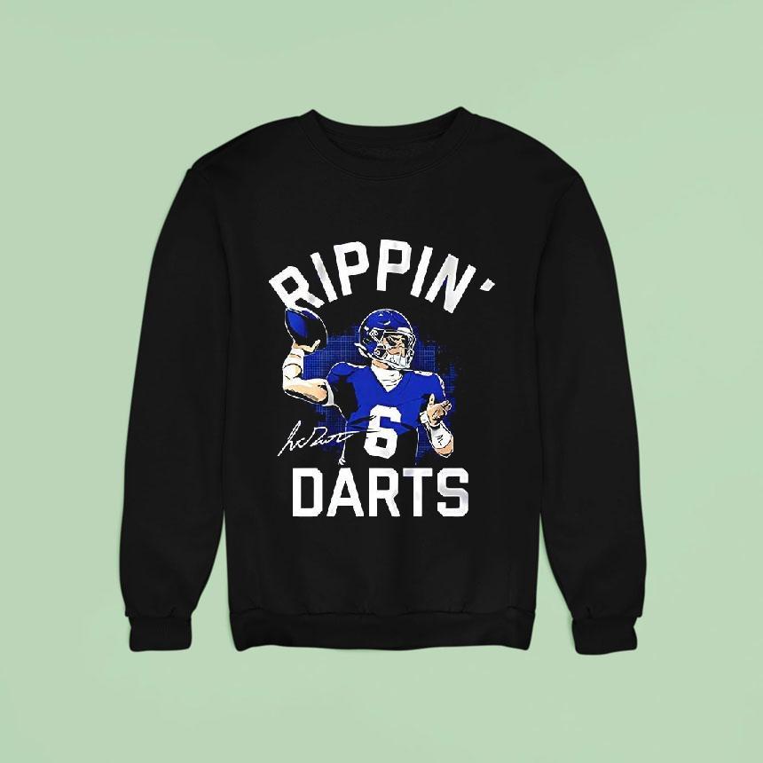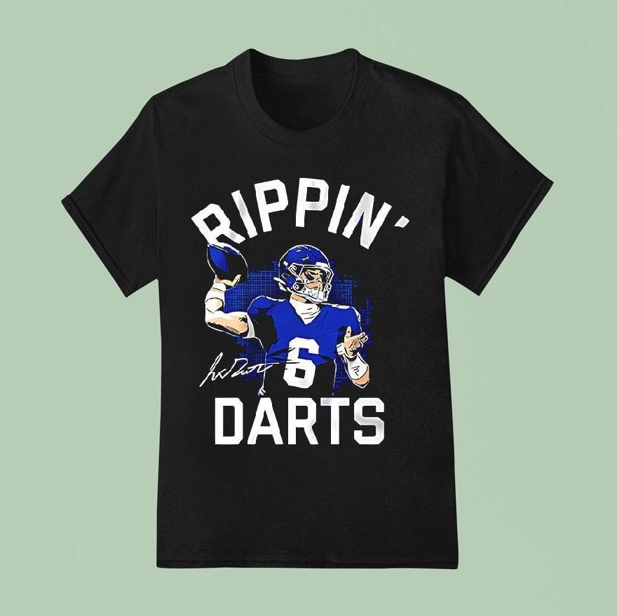 Casual chic, every day with Jaxson Dart New York Giants Rippin’ Darts Shirt, introducing the newest addition to the New York Giants team, Jaxson Dart! Known for his impressive arm strength and accurate passes, Dart is set to dominate the field in his Rippin’ Darts shirt. Get ready to see some major plays from this promising quarterback.
