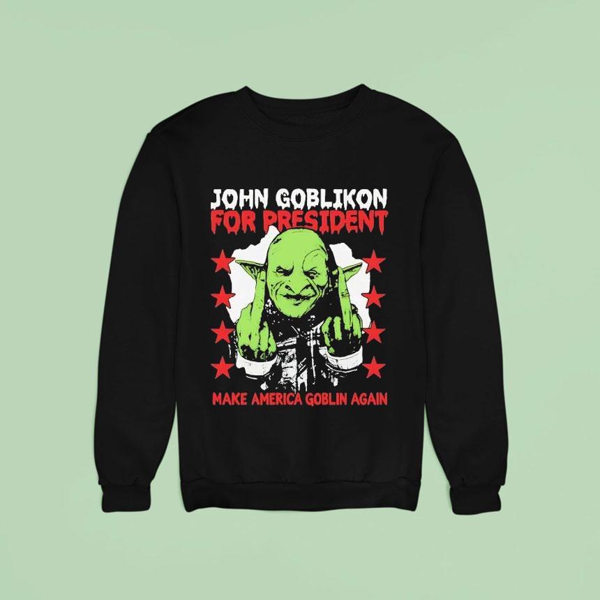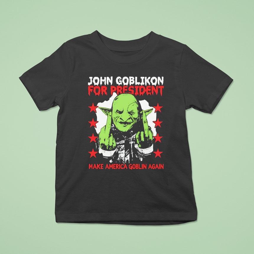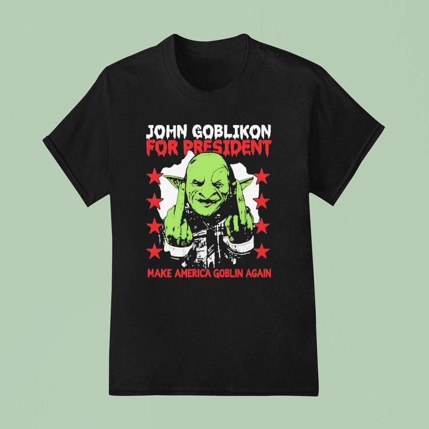 Versatile, stylish simplicity with John Goblikon For President Make America Goblin Again Middle Fingers Shirt, introducing the most unconventional presidential candidate yet, John Goblikon. With his campaign slogan “Make America Goblin Again” and his signature Middle Fingers shirt, Goblikon promises to bring change to the political landscape with his goblin ways. Get ready to embrace a new kind of leader.