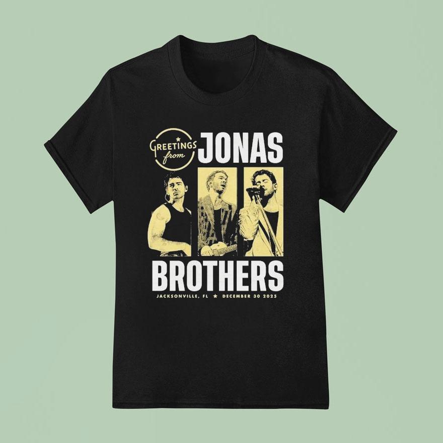 Casual chic, every day with Jonas Brothers Greetings From Your Hometown Jacksonville, Fl 2025 Shirt, get ready to rock out with the ultimate tribute to the Jonas Brothers – the Jacksonville, FL 2025 shirt! Show your love for the brothers and your hometown with this limited edition tee showcasing the iconic trio and a futuristic twist. Get yours now and represent Jacksonville in style!