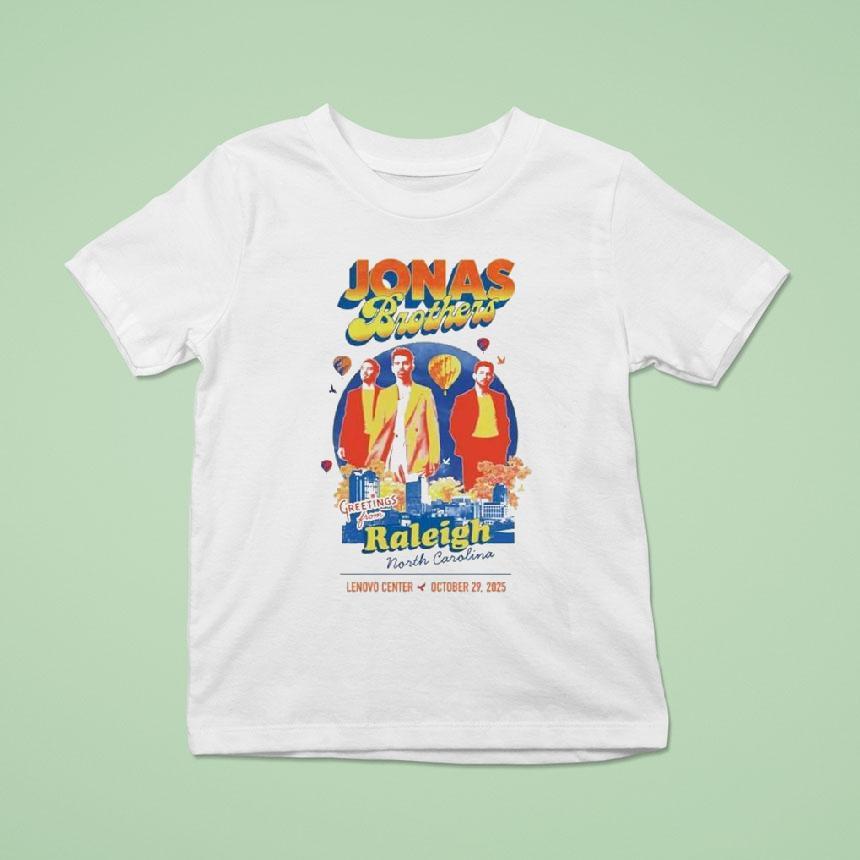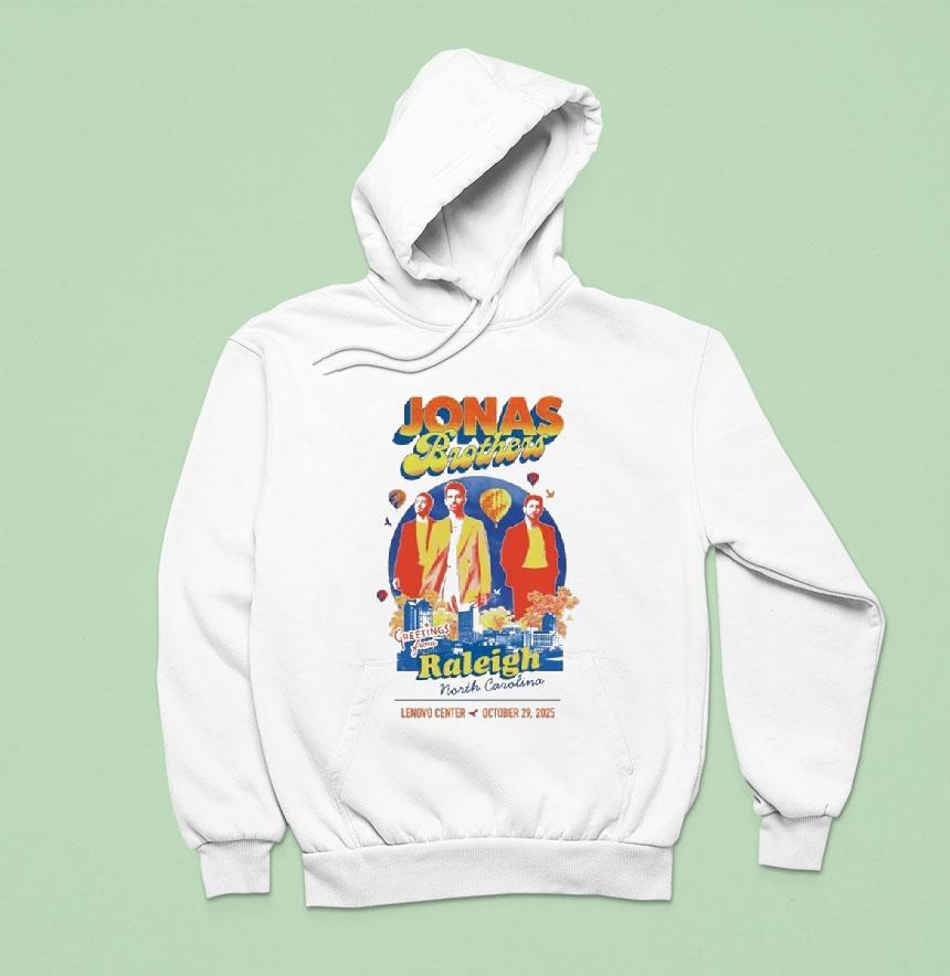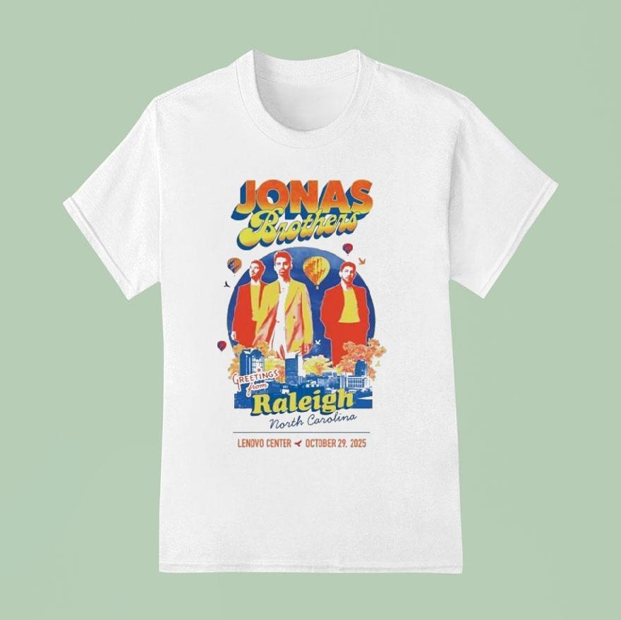 Chic simplicity, everyday elegance with Jonas Brothers Raleigh Nc Greetings From Your Hometown At Lenovo Center On October 29th 2025 Shirt, welcome home, Raleigh! The Jonas Brothers are coming back to their hometown for an unforgettable concert at the Lenovo Center on October 29th, 2025. Get ready to show off your hometown pride with a limited edition shirt commemorating this special event. Don’t miss out on this epic performance!
