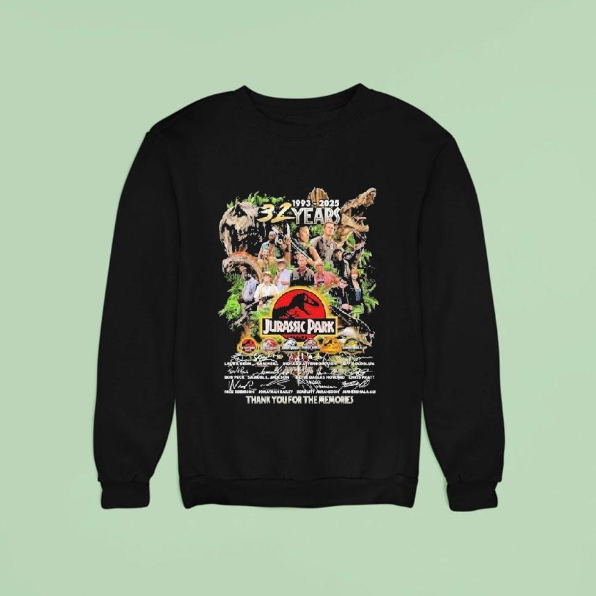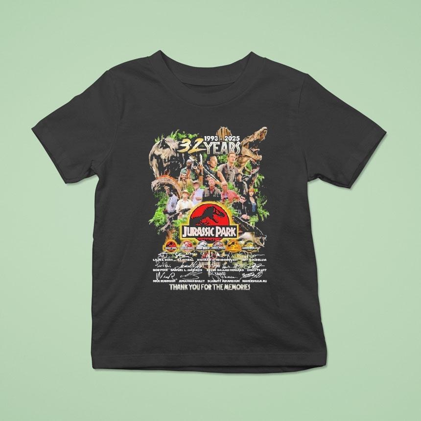 Comfortable fashion choice with Jurassic Park 1993 2025 32 Years Thank You For The Memories Signatures Shirt, step back in time to 1993 when Jurassic Park first hit the big screen and captured our imaginations. Now, 32 years later in 2025, we still cherish the memories and celebrate the iconic film with the limited edition “Thank You For The Memories” signatures shirt.