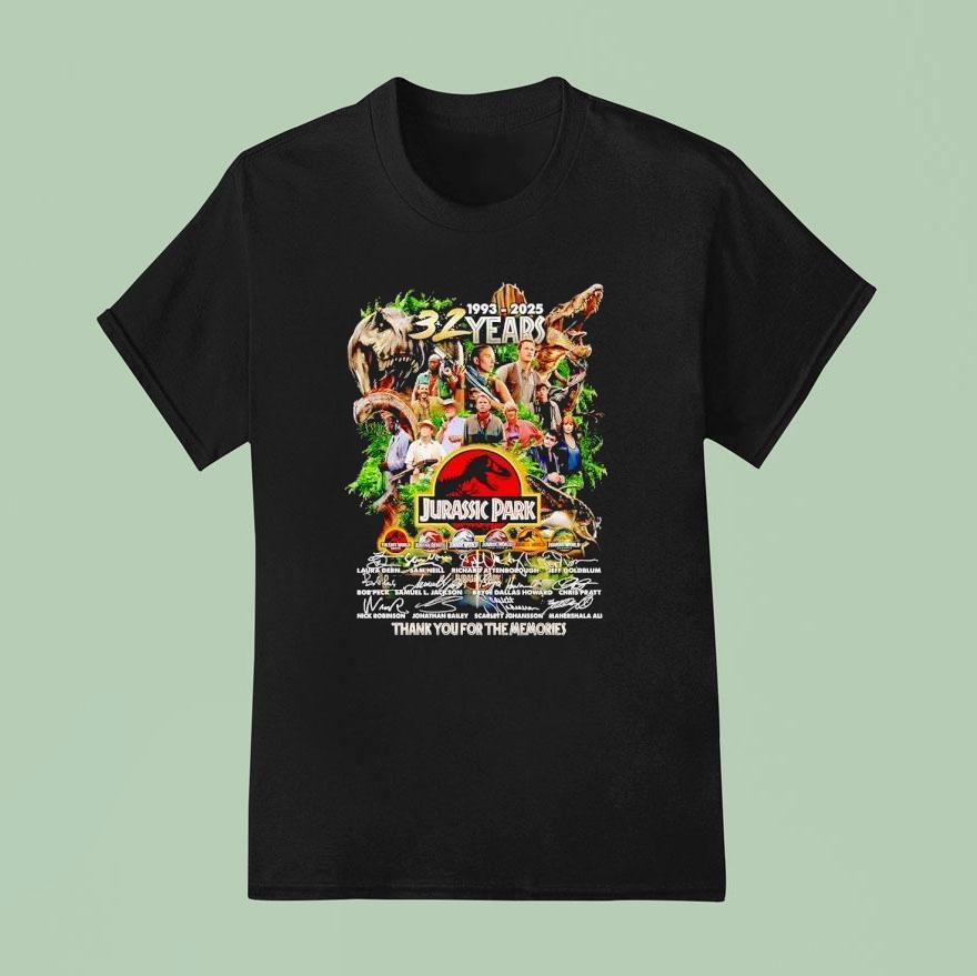 Fashion meets comfort with Jurassic Park 32 Years 1993 2025 Thank You For The Memories Signatures Shirt, “Welcome to Jurassic Park, the beloved film that captured our imaginations 32 years ago in 1993. As we eagerly anticipate its return in 2025, let us take a moment to thank this iconic franchise for the memories it has given us. Show your appreciation with our ‘Thank You For The Memories’ signatures shirt.”